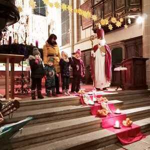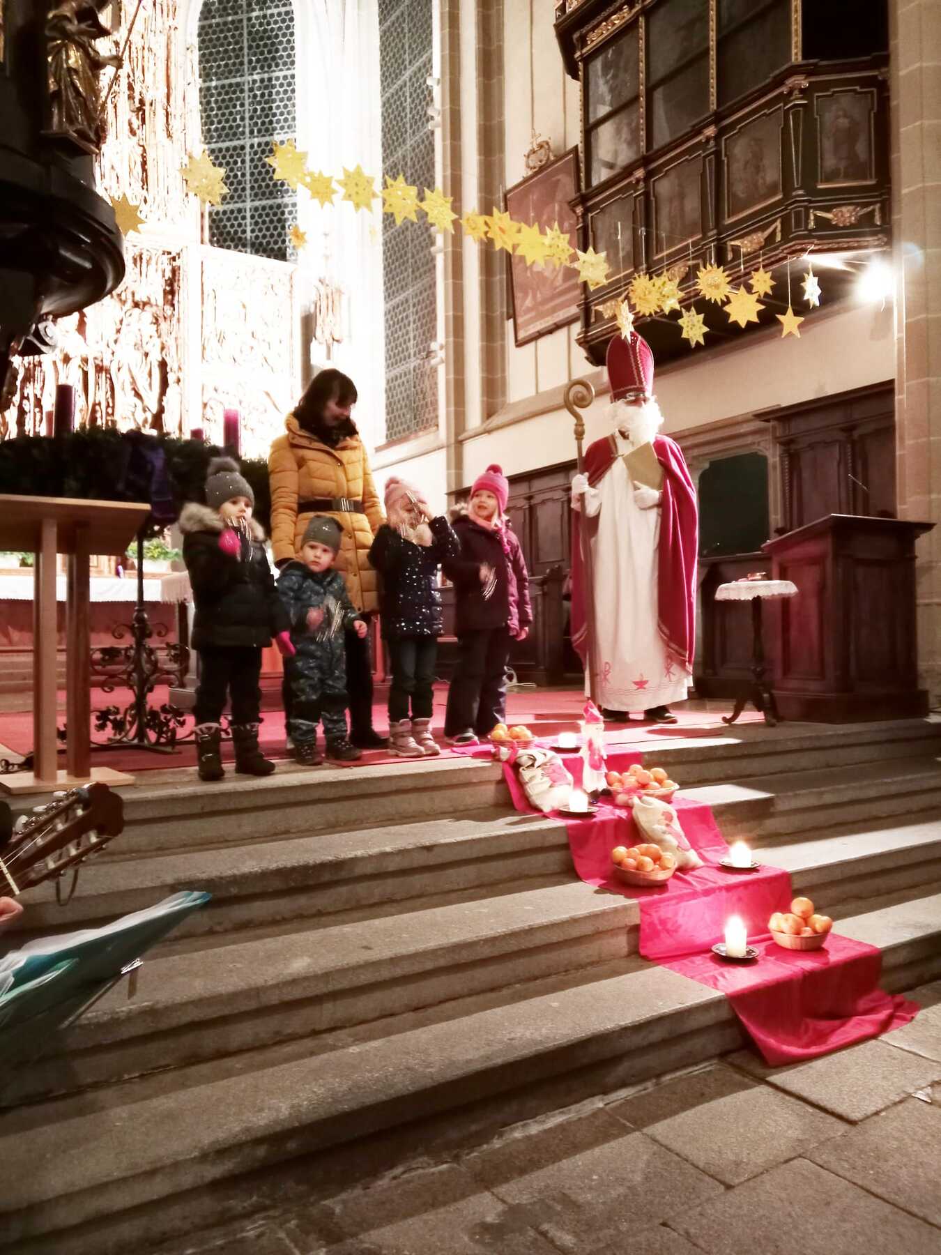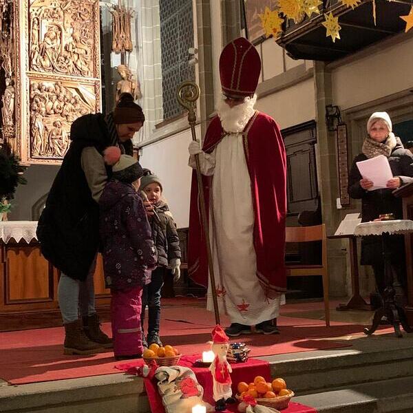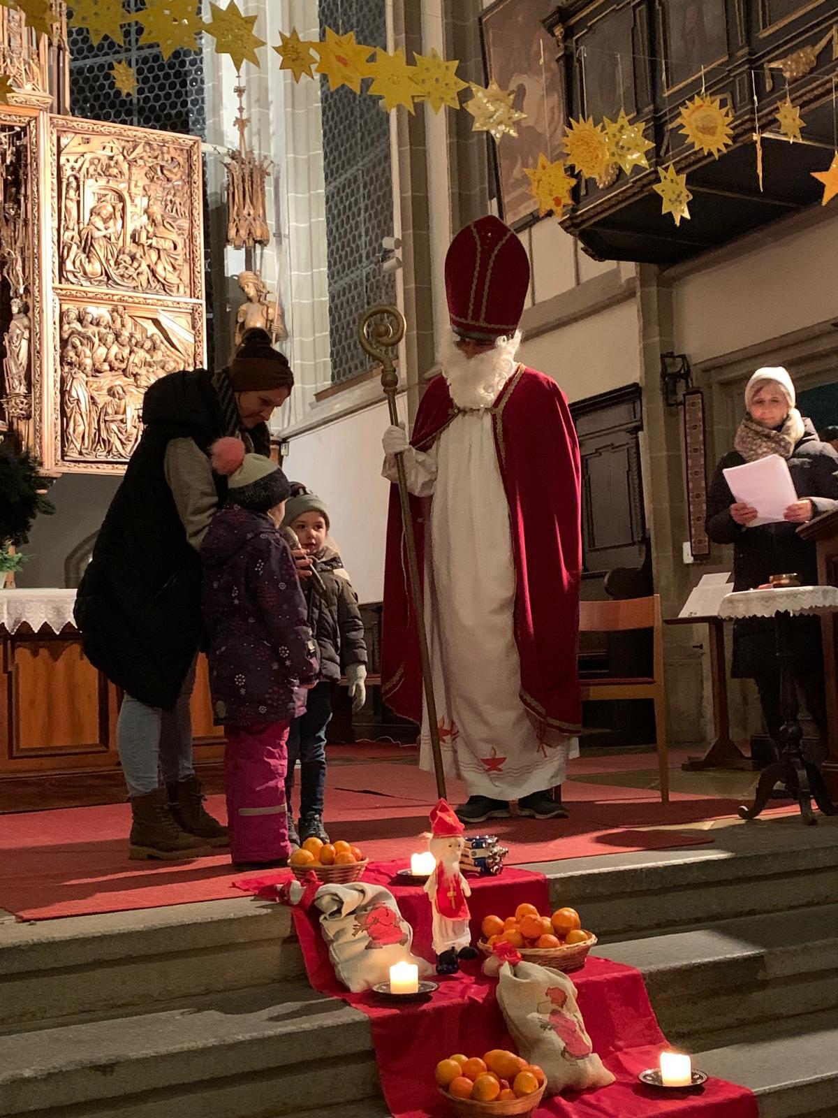 Nach gemeinsamen Singen und Beten konnten alle großen und kleinen Kinder noch zum Nikolaus gehen, der auch kleine Geschenke mitgebracht hatte.