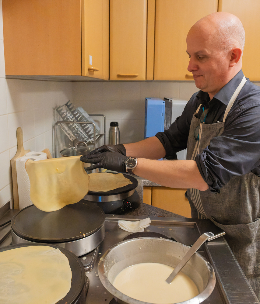 Ambros Gruber mit Crepes für die Sternsingerjause