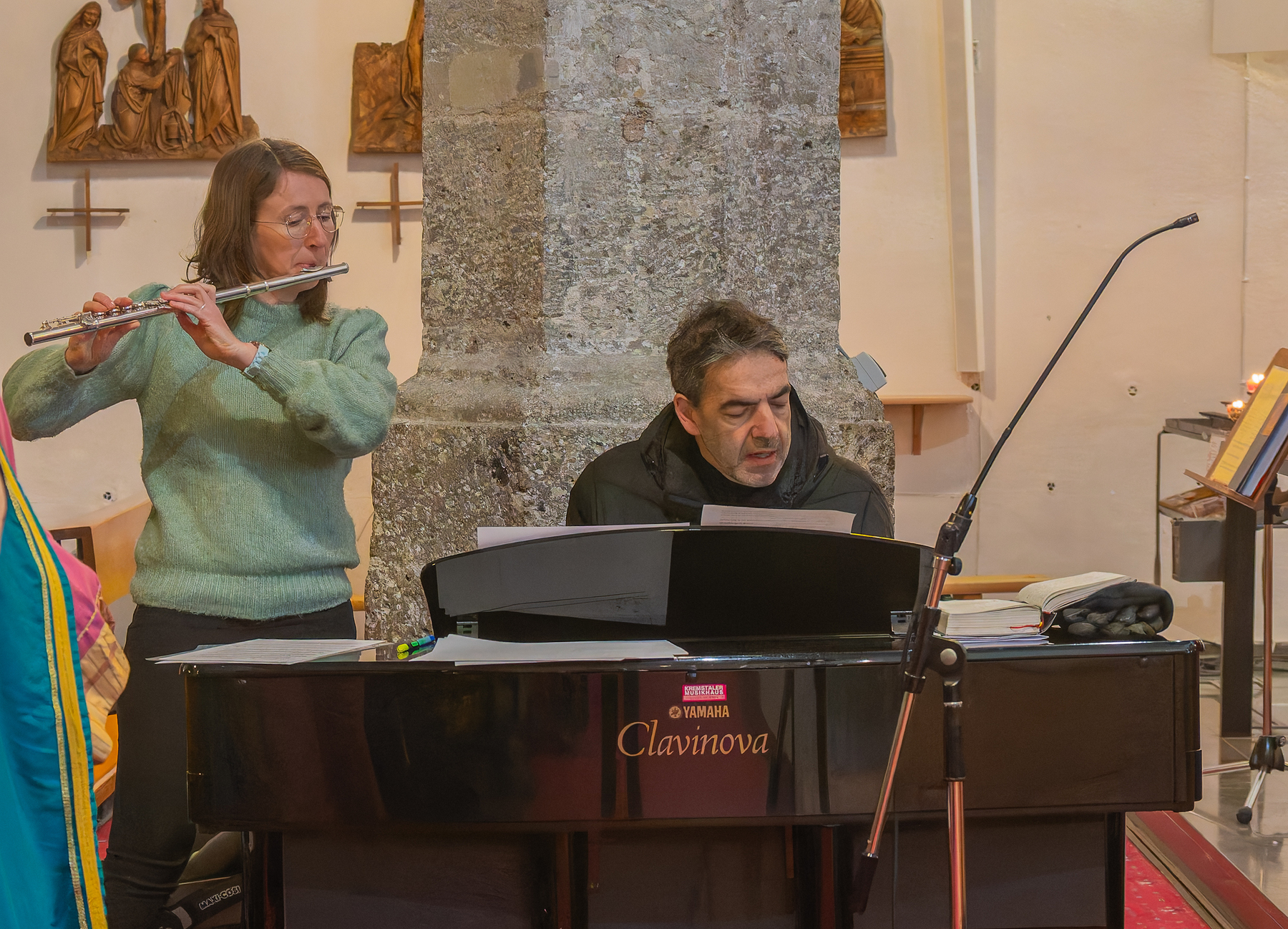 Musikalisch geprägt war der Gottesdienst durch verschiedene Sternsingerlieder, begleitet von Gregor Schrettle am Clavinova und Barbara Göttel auf der Querflöte.