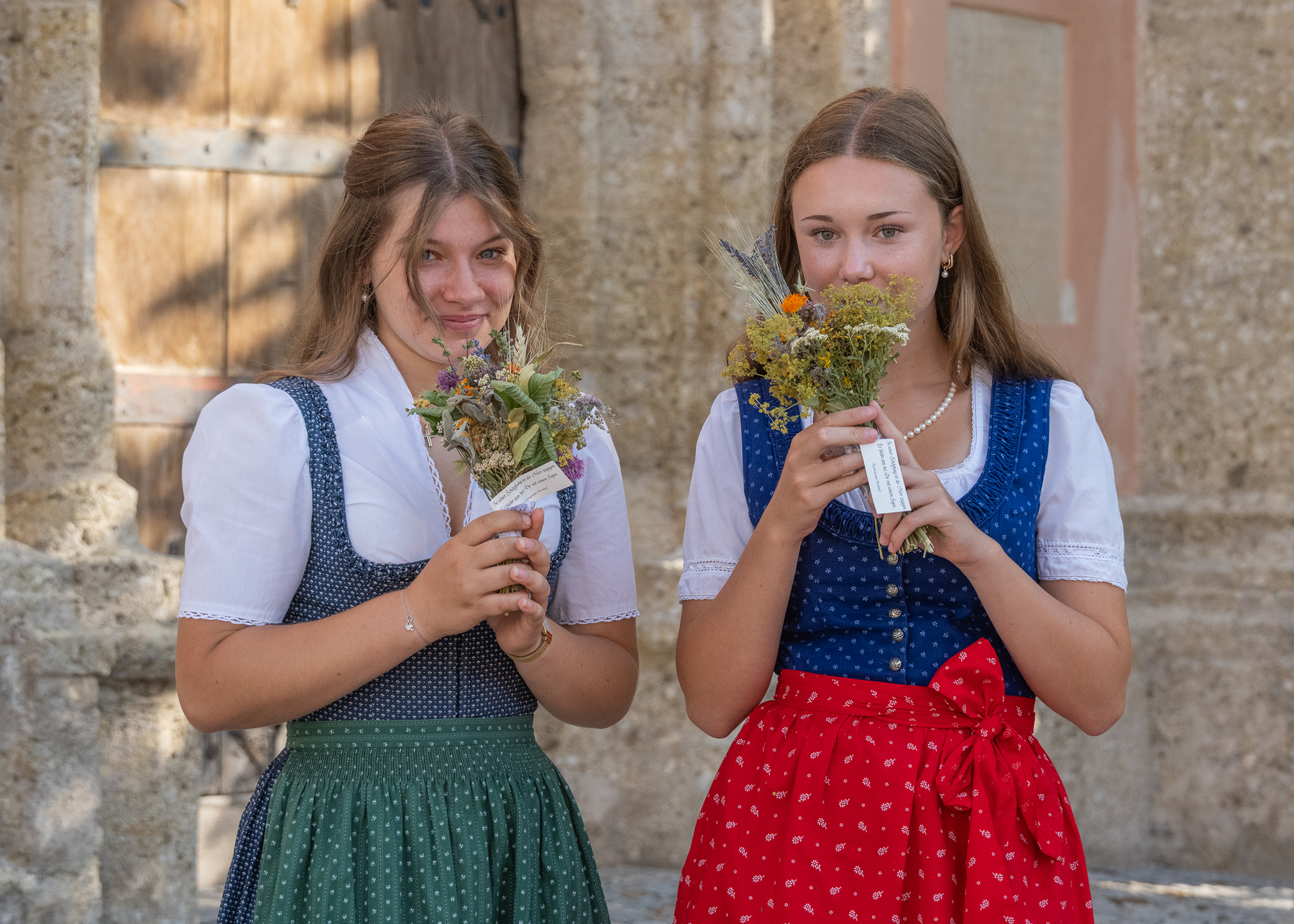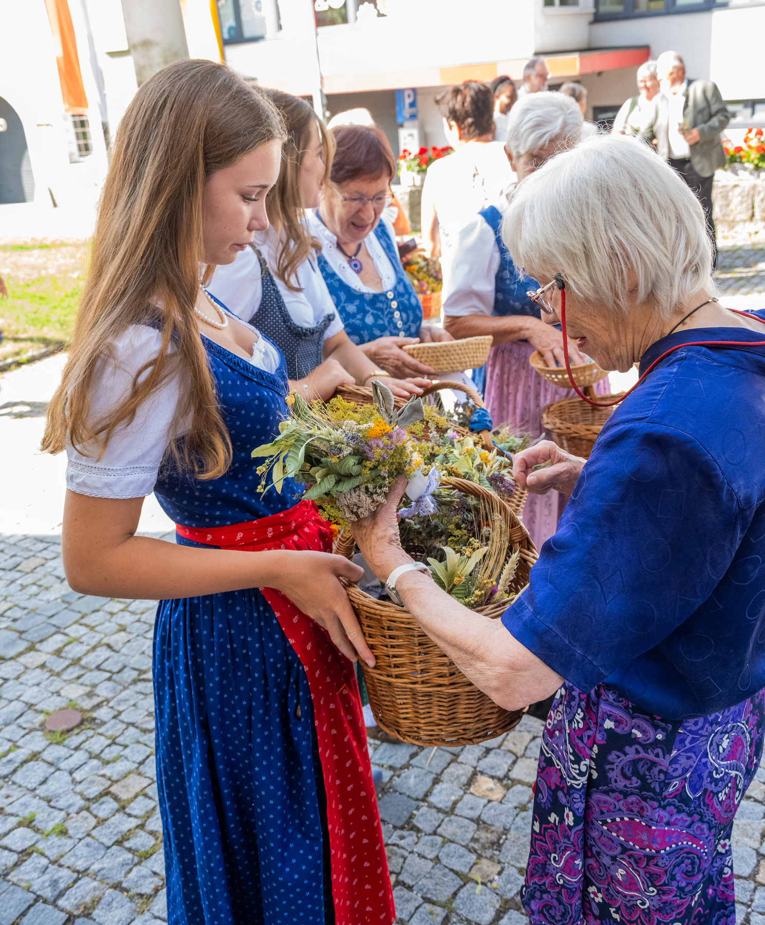 300 Kräuterbüscherl wurden von Frauen und Männern der Kirchdorfer Trachtengruppe gebundenen, die P. Severin am Ende des Gottesdienstes segnete, dann wurden sie verteilt.