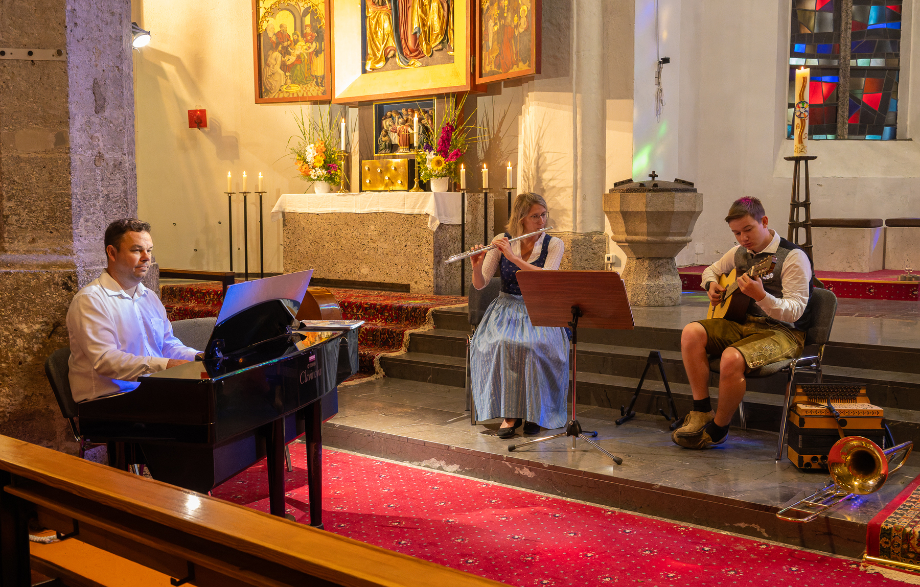Am Festtag Maria Himmelfahrt feierte Pfarrer P. Severin Kranabitl mit der Kirchengemeinde den Gottesdienst. Familie Renhardt umrahmte diesen musikalisch mit ihren vielfältigen Instrumenten.