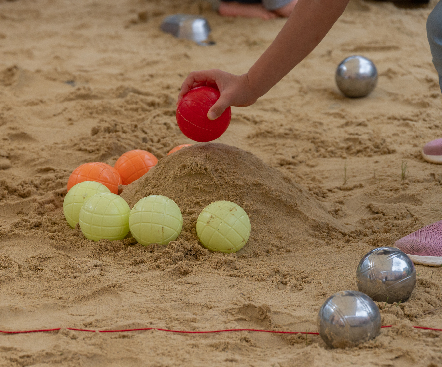 Eine Boule-Spielarena, Sandspielen für die Kleinsten, Seifenblasen, Mikado, Wasserspiele, gemeinsames Singen bei der Feuerschale begeisterten alle Generationen.
