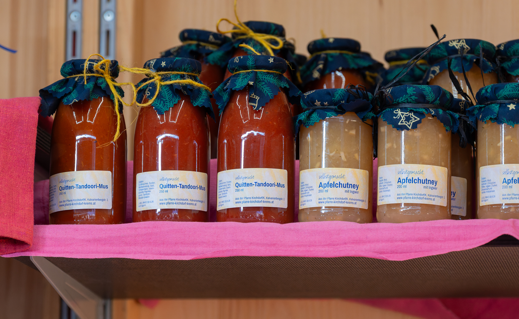 Feigensenf, Apfelessig, Kräutersalz, Apfelringe - einige der selbstgemachten Produkte aus unserer Pfarre Kirchdorf an der Krems. Sie wurden am Eröffnungswochenende beim Advent am Dom in Linz sowie beim Adventzauber in Kirchdorf angeboten. Der Verkaufserlös kommt der Renovierung des Pfarrhofs zugute.