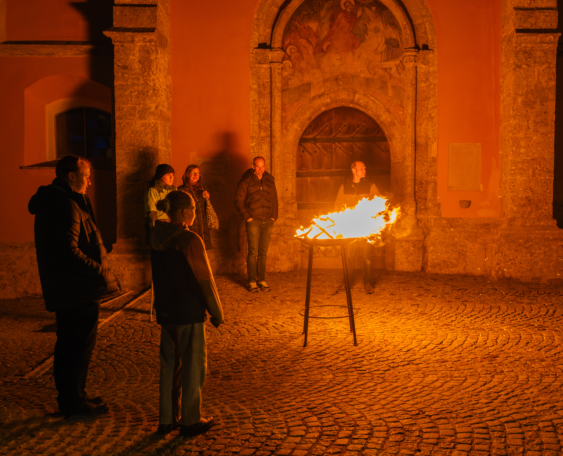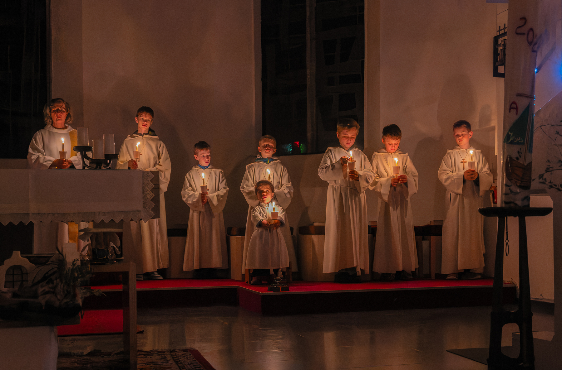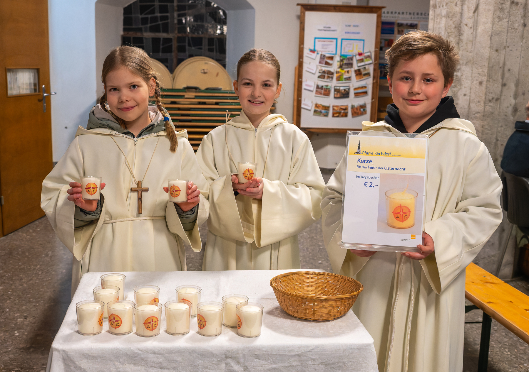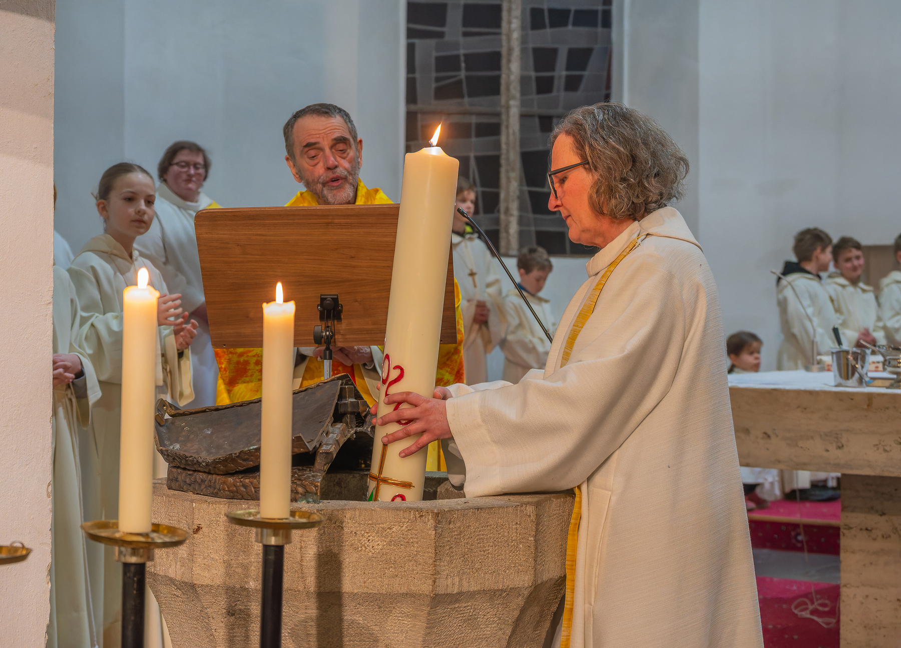 Diese besondere Nacht beginnt mit der Lichtfeier vor der Kirche beim Osterfeuer. An diesem wird die Osterkerze entzündet. Dieses Licht wird in die dunkle Kirche getragen und beim Ruf "Lumen Christi" weitergegeben. Dabei erhellt der Kirchenraum immer mehr.