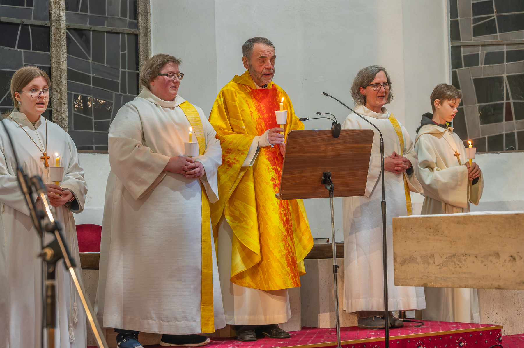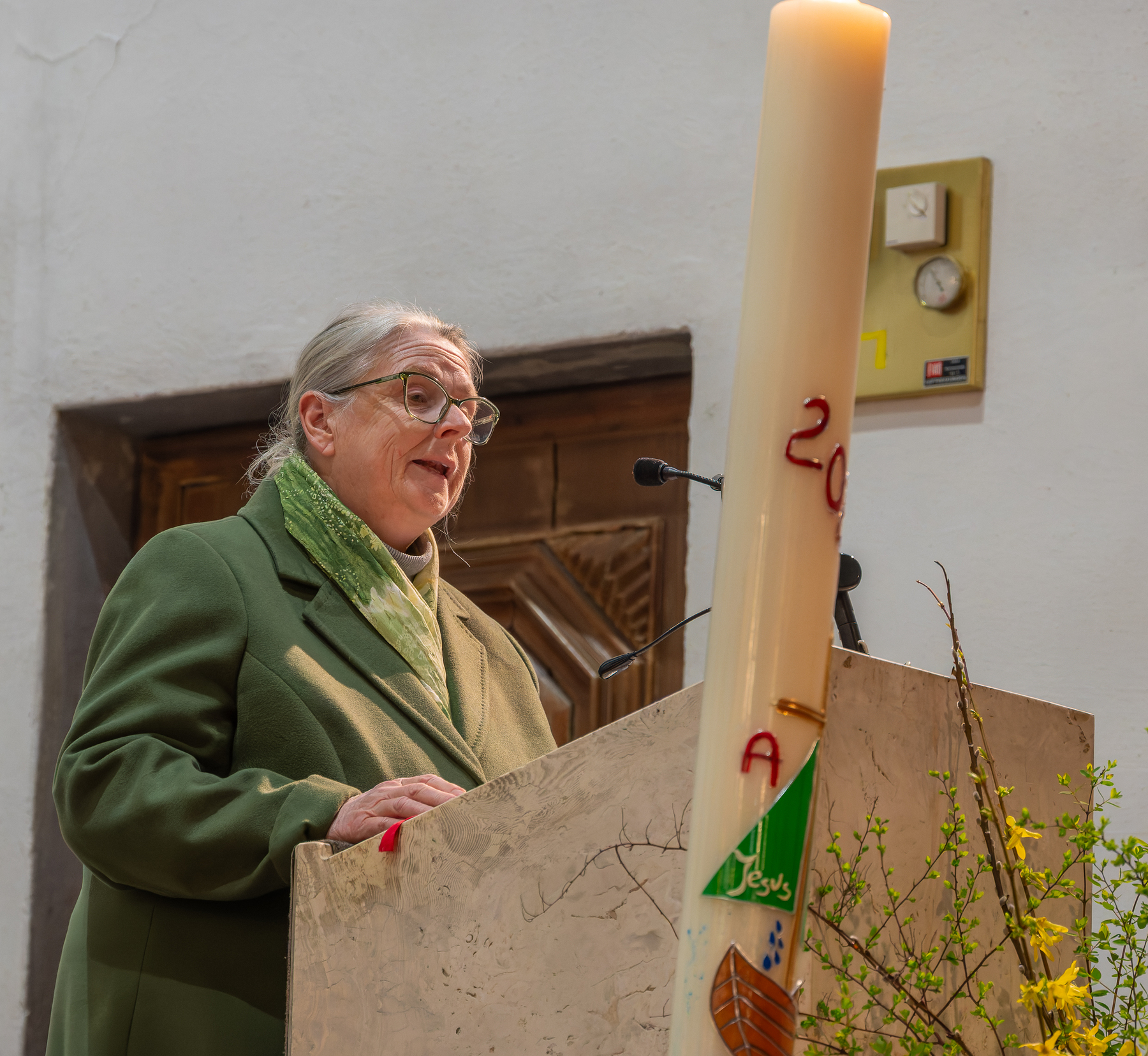 Der Gesang der Mitfeiernden im Kirchenraum, der Kirchenchor und die Bläser machten die Botschaft des Auferstehungsgottesdienstes hörbar.