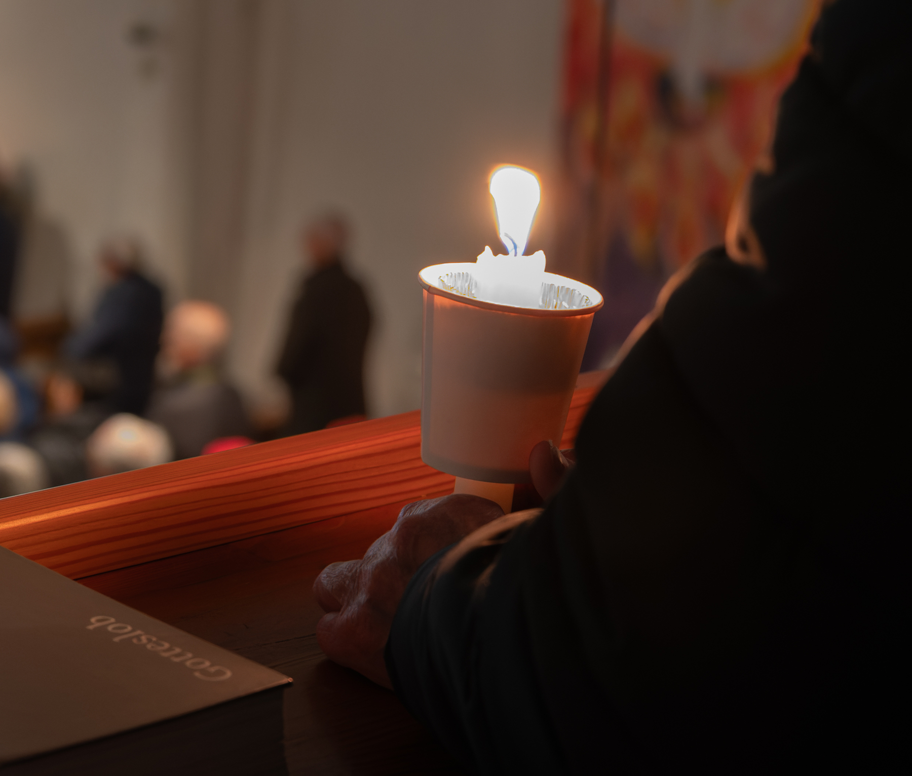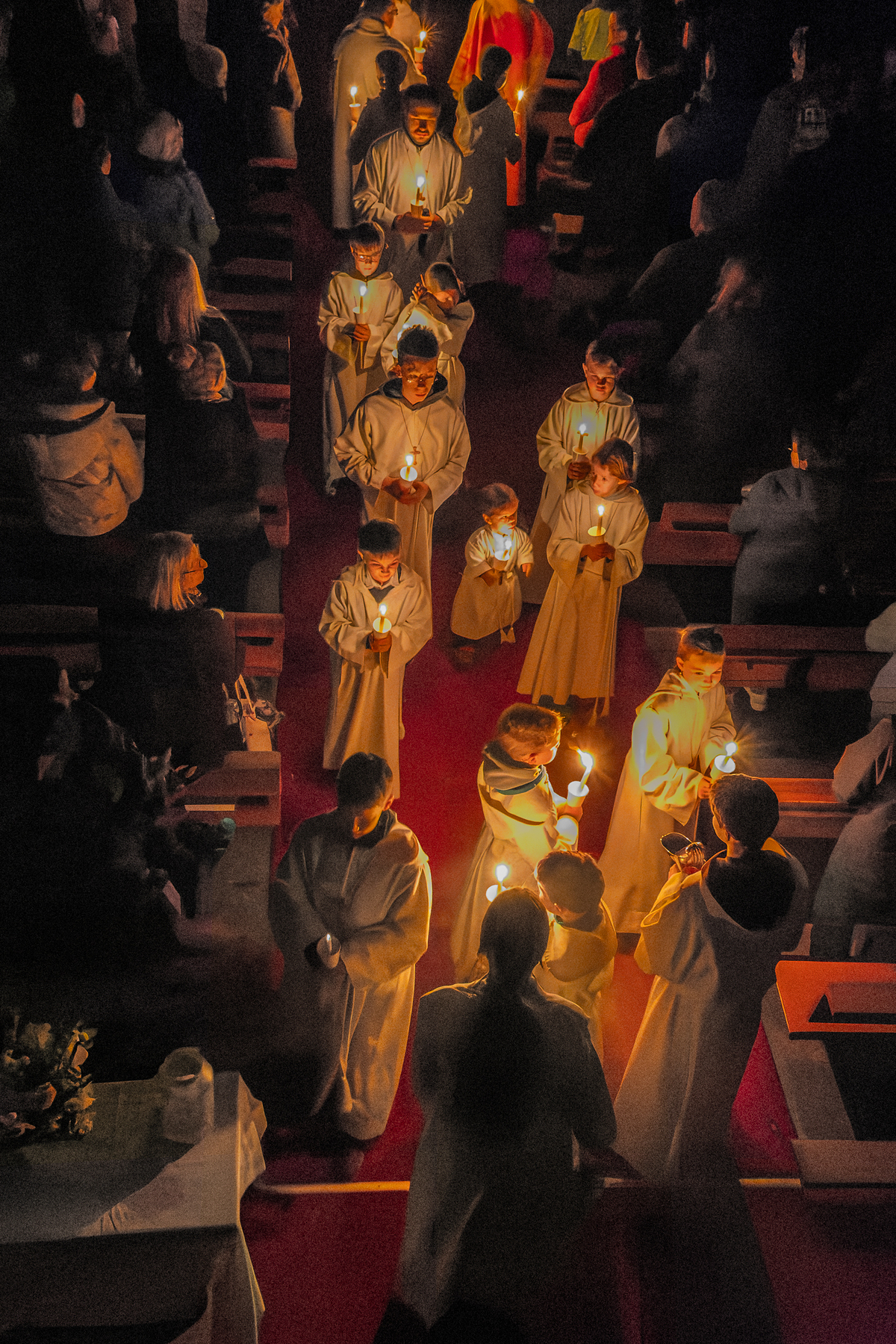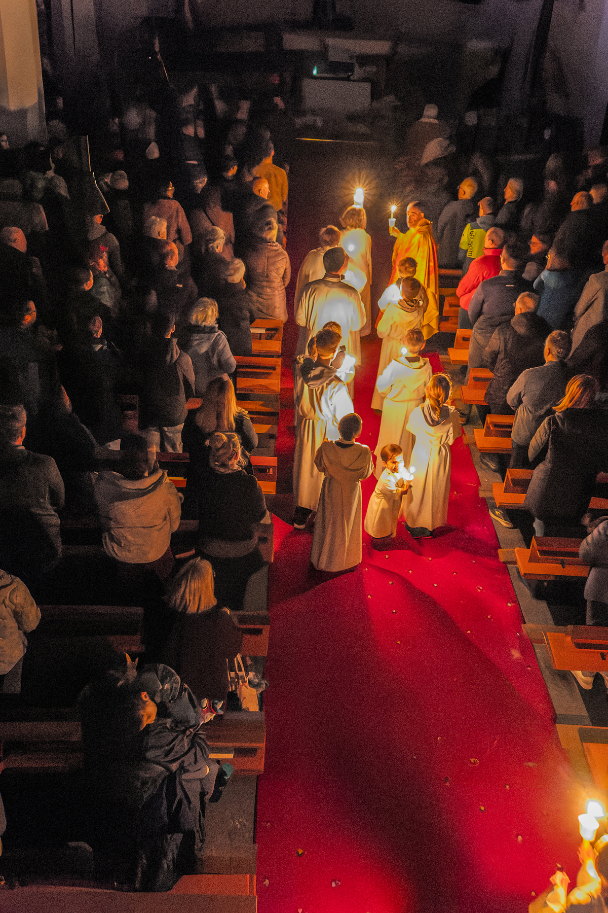 Zum feierlichen Gloria kommt das Glockengeläut wieder zurück und das elektrische Licht wird eingeschaltet.