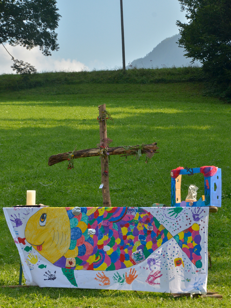 49 Mädchen und Buben aus drei Pfarren trafen sich in Spital am Pyhrn. Gerade noch in Österreich ging es jeden Tag in ein anderes Land. Brasiliens Dschungel musste durchquert werden, am chinesischen Basar wurden Berufe ausprobiert. In Hawaii nutzte man das geniale Wetter und wanderte zum Strand des Gleinkersee. Der gemeinsame Lagergottesdienst wurde gemeinsam mit P. Severin in Italien gefeiert. Die Kinder bereiteten ihn am Vormittag gemeinsam zum Thema „Regenbogenfisch“ vor. Danach gab es natürlich ein Lagerfeuer mit Grillerei, Spielen und Singen.