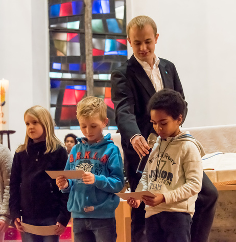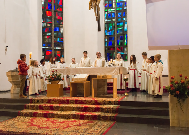 Am Christkönigssonntag steht der Gottesdienst in Kirchdorf/Krems ganz im Zeichen der Ministrantinnen und Ministranten. Die beiden Leiter Jakob und Samuel Haijes haben dabei auf kindgerechte Elemente besonderen Wert gelegt. Im Rahmen des Gottesdienst geht es um ein Danke an die Ministranten und die feierliche Aufnahme der neuen in die Gemeinschaft. Seid ihrer Erstkommunion haben sich vier Kinder auf den Dienst am Altar vorbereitet. Neben Üben gehörte dazu auch das gemeinsame Spielen und Spaß haben. Im Gottesdienst stellen sich Romy, Leonie, Niklas und Michael der Pfarrgemeinde vor und erzählten über ihre Hobbys. Das Highlight war die anschließende feierliche Ankleidung durch die Ministrantenverantwortlichen. Die neuen Minis starteten ihren offiziellen Dienst gleich mit der Gabenbereitung.