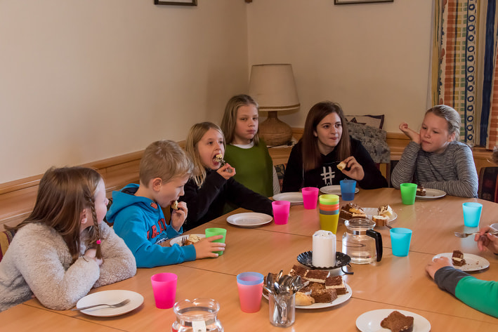 Nach dieser schönen Feier trafen sich alle Ministranten traditionell im Jungscharraum. Dort gab es ein großes Danke für das Engagement der Kinder und Jugendlichen durch Pastoralassistentin Bernadette Hackl. Zu diesem feierlichen Rahmen gehörten auch Kuchen, Saft und gemeinsames Spielen im Pfarrsaal.