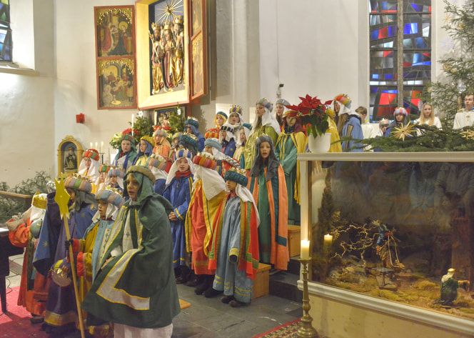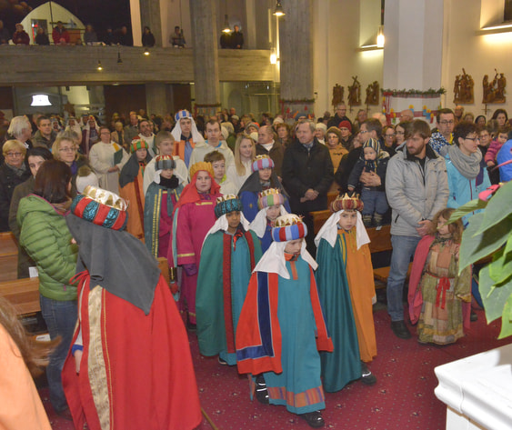 Ein buntes, fröhliches Bild gab die große Schar der Kirchdorfer Sternsinger ab, die zum festlichen Gottesdienst einzogen. Die Männer-Gruppe sang dabei Dreikönigslieder.