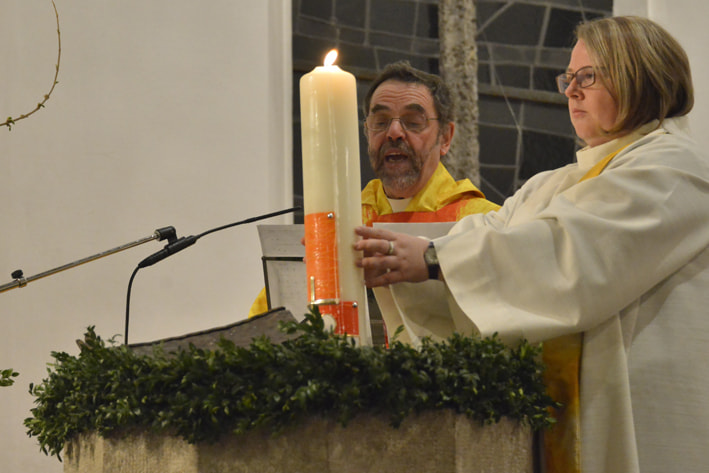 Vor den Lesungen kommentierte Ernst Winkler-Ebner deren Inhalt, um den Bezug damals - heute herzustellen. Nach dem Evangelium fand die Weihe des Taufwassers statt und das Licht der Osterkerze wurde für die Erneuerung erneut weitergegeben. Musikalisch gestaltet wurde der Gottesdienst vom Kirchenchor, Bläsergruppe mit Volksgesang.