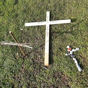 Jede und Jeder ist eingeladen bis Karfreitag ein Kreuz zu gestalten. Man kann es aus Zweigen binden, aus Holz bauen, am Boden legen oder eine ganz andere Form wählen. Größe und Material, ob kommentarlos, beschriftet oder bemalt, das ist egal. Es geht darum auszudrücken, was zurzeit mein Kreuz, mein Leid ist.