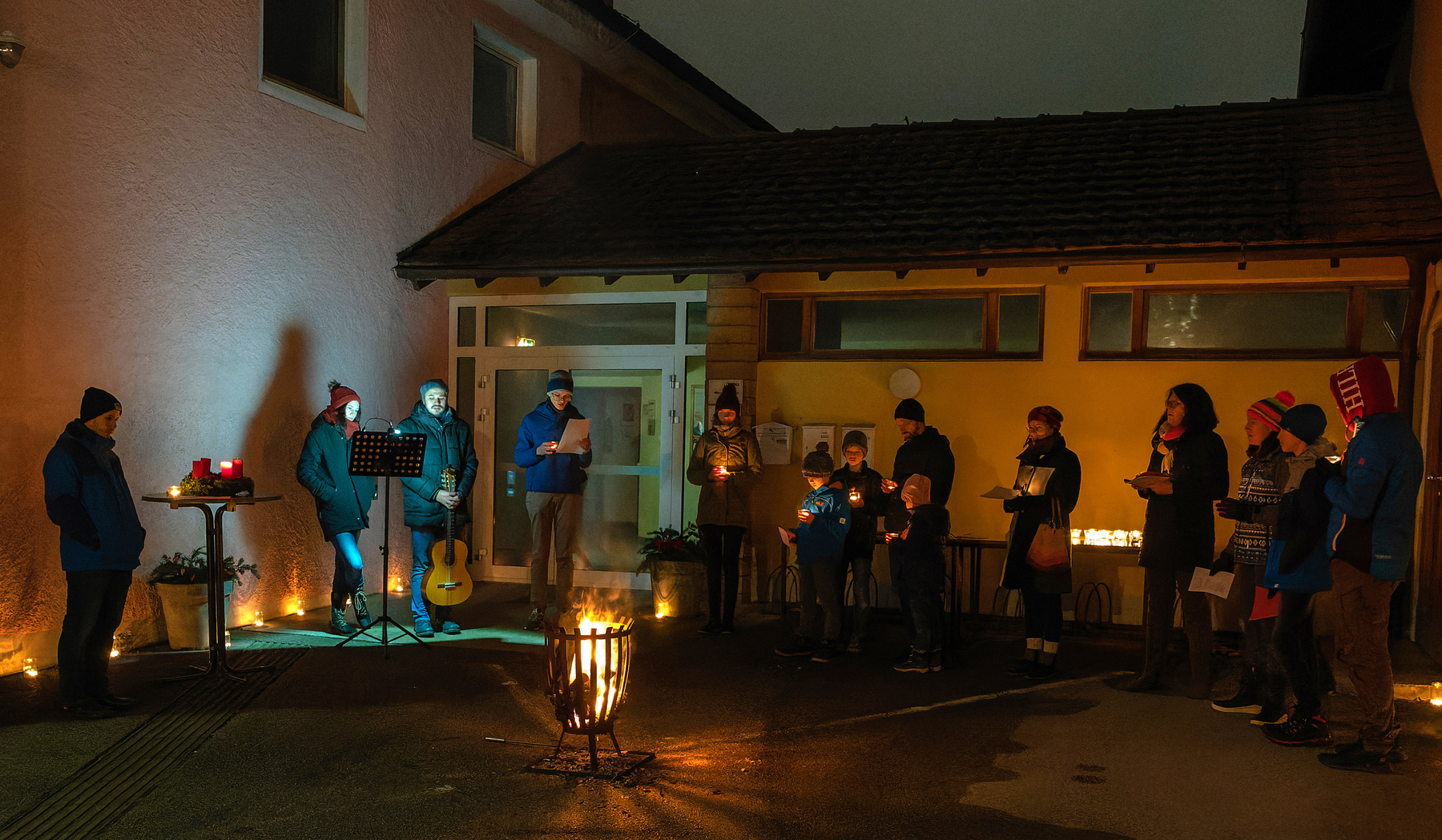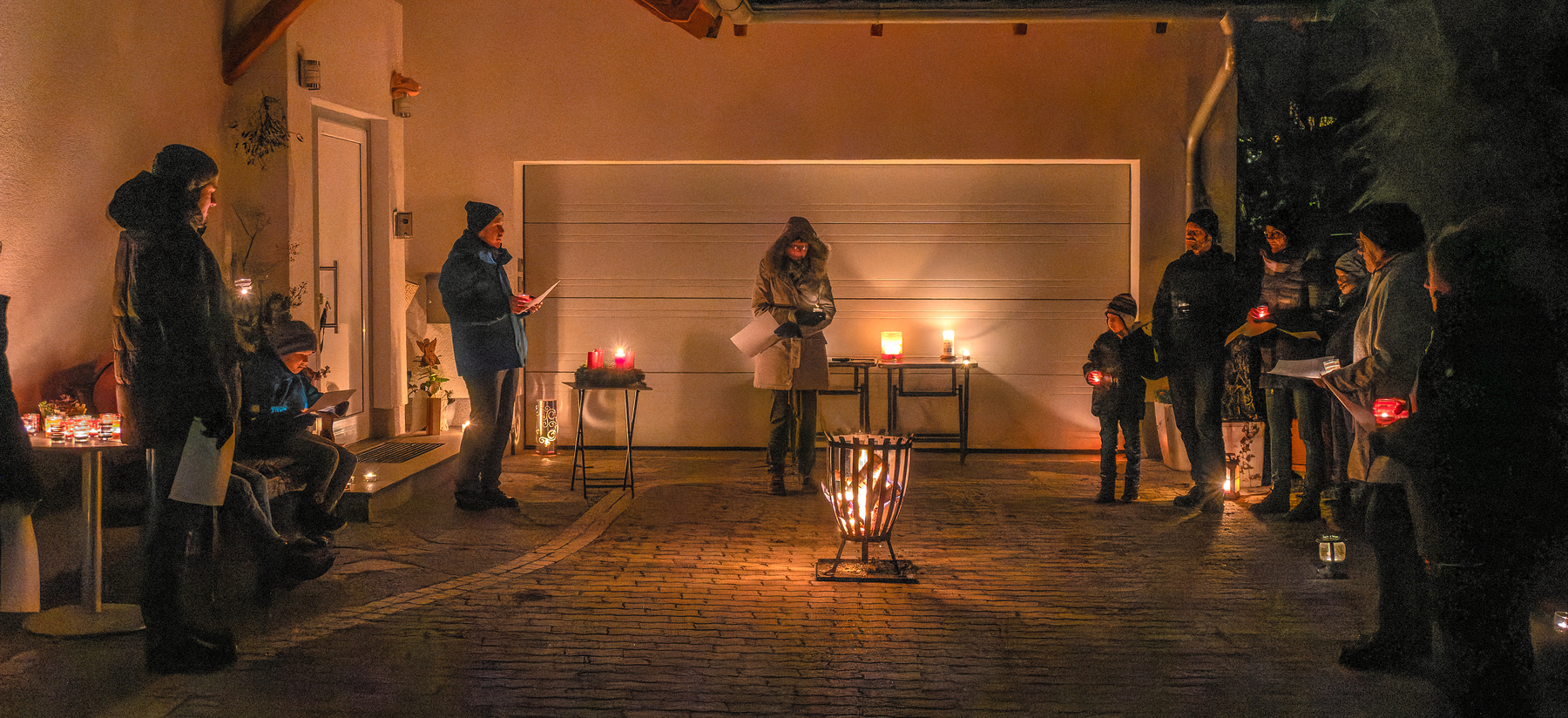 Personen und Gruppierungen laden zu einer kurzen adventlichen Feier vor ihr Haus ein.
