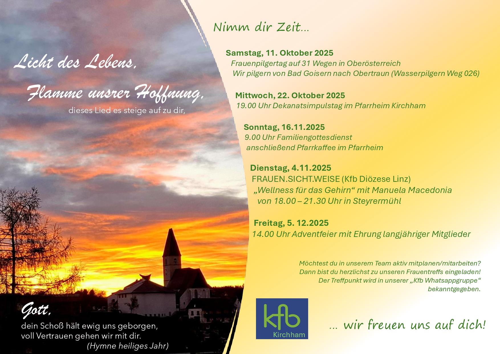 Herzliche Einladung zu den Aktivitäten unserer Kath. Frauenbewegung