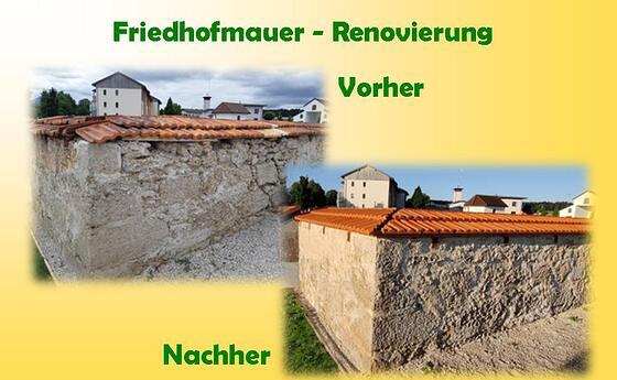 Friedhofmauer – ein gelungenes Projekt Dank der großartigen Unterstützung der Bevölkerung konnte die Sanierung unserer Friedhofmauer bereits Anfang September abgeschlossen werden. mehr: Friedhofmauer – ein gelungenes Projekt