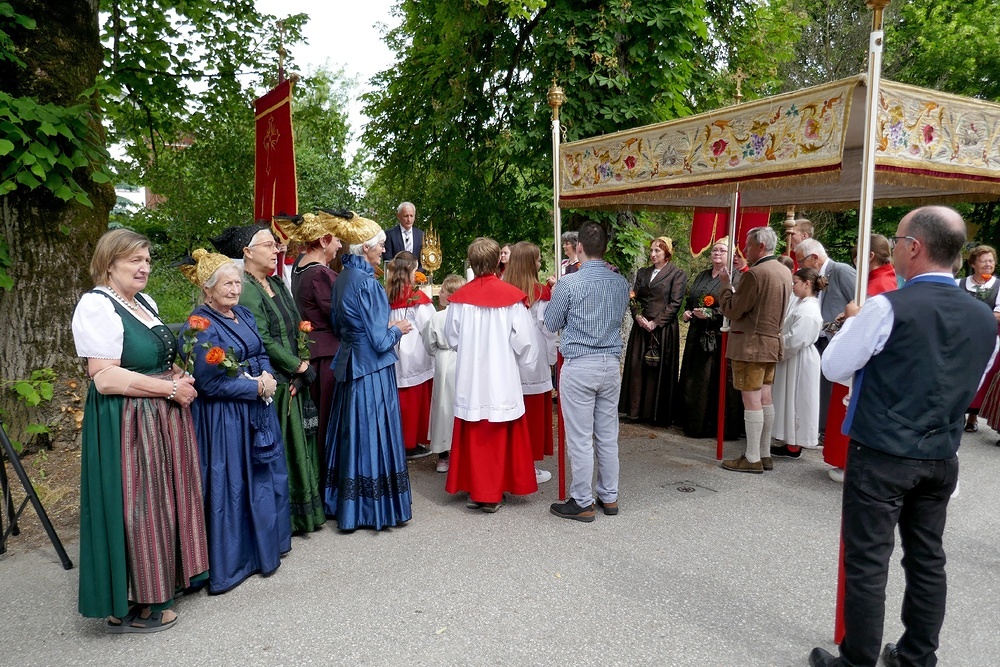 Fronleichnam ist seit jeher ein Fest aus Tradition, wo die Menschen das Brot des Lebens nach aussen tragen. Da auch wie im letzten Jahr kein Priester verfügbar war, wurden die Fronleichnamsprozession bei den 4 Altären von den Wortgottesdienstleitern Manfred Huber, Barbara Sachsenhofer, Norbert Hanger und Thomas Reichweger-Cepek gestaltet. Reinhard Brandstetter segnete zum Abschluss der Prozession, die Wortgottesdienstleiter, Himmelträger und Ministranten in der Kirche.