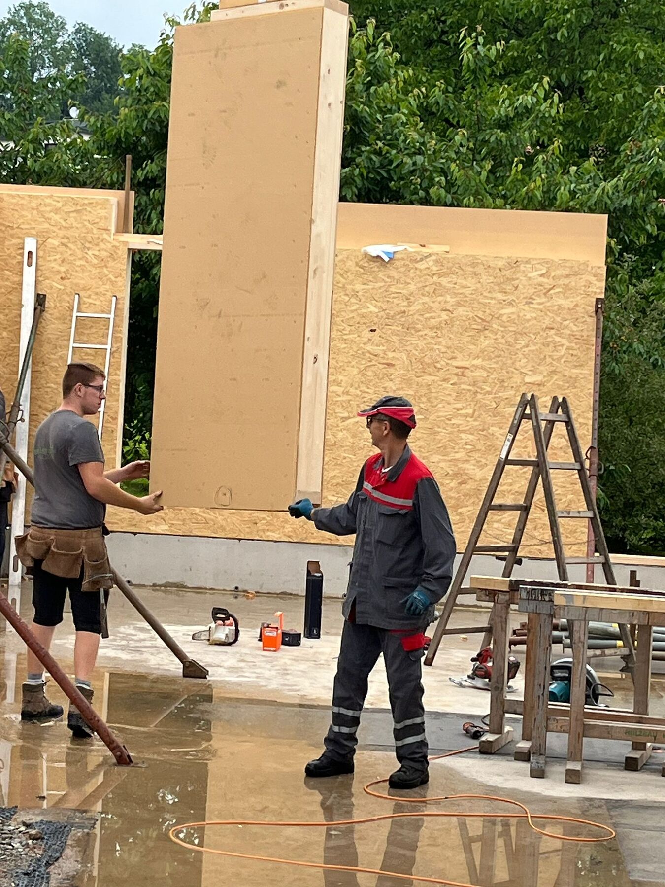 die Zimmerer stellen das Pfarrheim auf