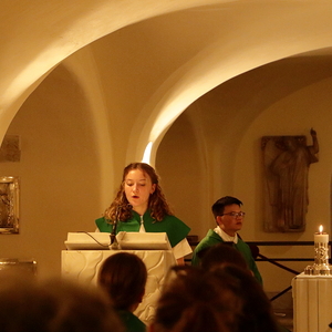 Wir zogen in die Kirche nach vorne zu Paulus Grab ein und begannen das Lied "Laudate dominum" zu singen zuerst ganz leise doch dann wurden wir immer lauter und lauter bis man das Gefühl hatte, dass die ganze Kirche mit dem Gesang gefüllt worden ist. Wie wir standen und sangen kamen immer mehr Leute aus allen Ecken der Kirche und fingen an uns zuzuhören und uns zu beobachten und einige filmten uns sogar. Für mich war das einer der schönsten Gänsehautmomente der Woche.