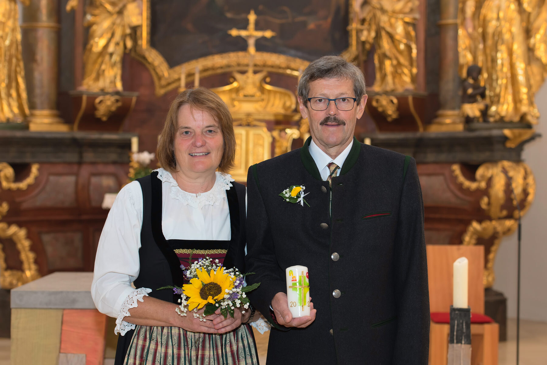 Wegen Corona musste die Feier in den Herbst verschoben werden und bedingt durch die Vorgaben der Regierung und der Diözese konnten die Jubelpaare nicht wie sonst zusammen mit der Pfarrgemeinde feiern. Damit die vorgeschriebenen Abstände eingehalten werden konnten, war der Festgottesdienst auf die Jubelpaare und deren engste Angehörige beschränkt.