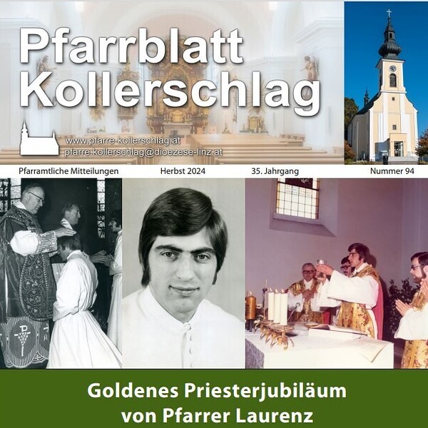 Das Herbst-Pfarrblatt ist diesmal eine besondere Ausgabe zu Pfarrer Laurenz Neumüller seinem goldenen Priesterjubiläum. Sie enthält Dankworte an unseren Pfarrer, Interviews und viele interessante Berichte aus unserem Pfarrleben.