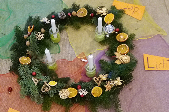 Advent – Ankunft und Erwartung. Gemeinsam mit den Kindern wurde ein Adventkranz gestaltet und dekoriert und auch einige Fragen zum Adventkranz wurden beantwortet. Passend zum Thema wurden die Lieder