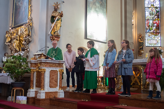 Zum "Vater Unser" kamen alle Kinder in den Altarraum, wo sie vom Herrn Pfarrer einzeln gesegnet wurden.
