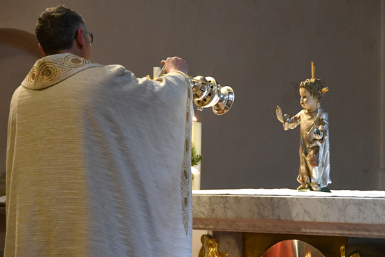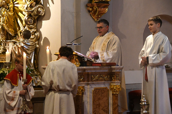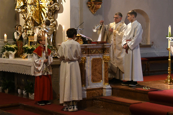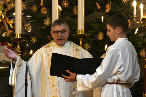 Das anschließende Mettenamt wurde von Pfarrer Erwin Kaleis zelebriert. Die liturgische Feier fand ihre klangvolle Ergänzung durch den Festtagschor, der die Messe musikalisch umrahmte und für Gänsehautmomente unter den Kirchenbesuchern sorgte.