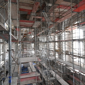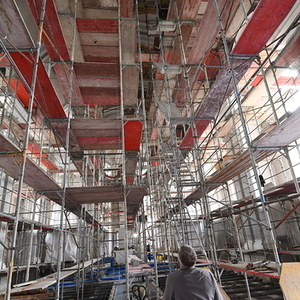 Hier einige Fotos vom Mittwoch den 15. April . Das Gerüst im Innenraum steht.