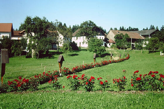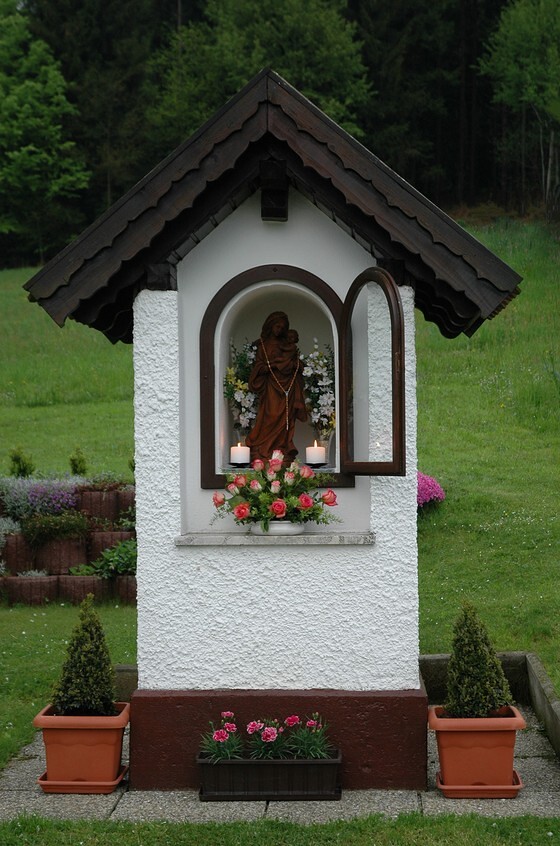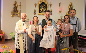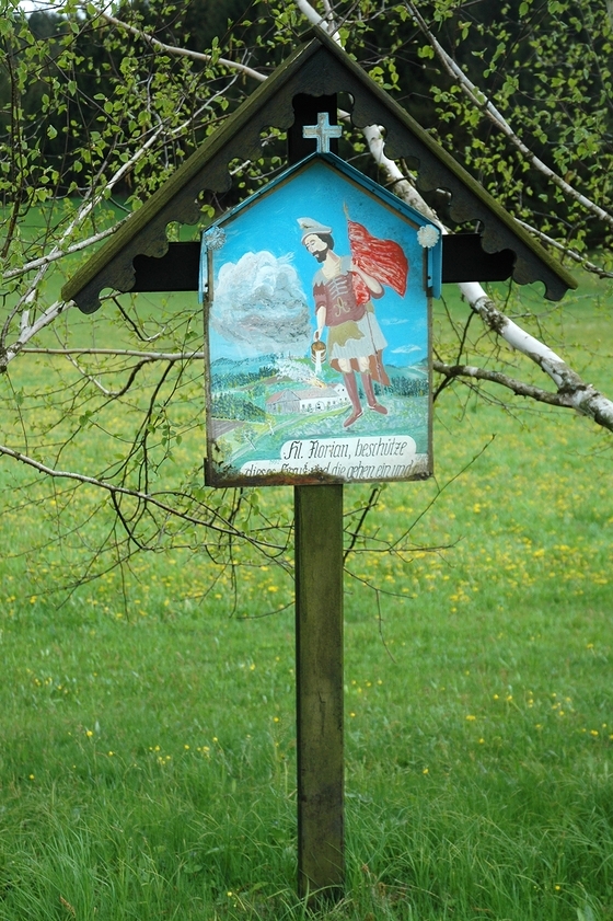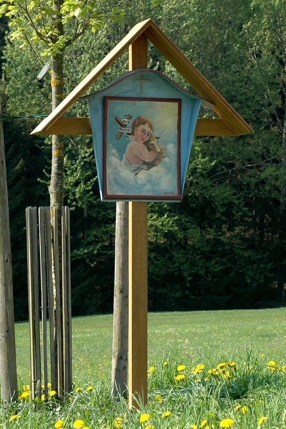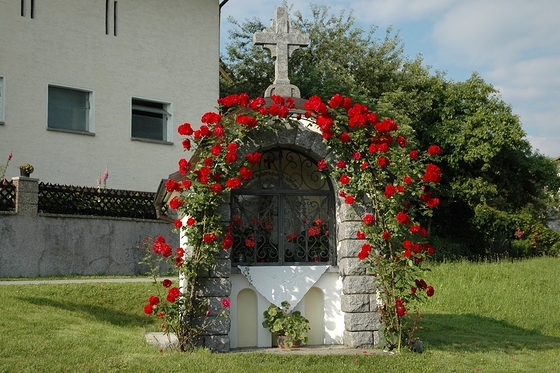 Betritt man die Pfarrkirche (Dombaumeister Matthäus Schlager, Weihe 1905) durch den gegenüber dem Pfarrhof gelegenen Eingang, leiten die Deckengemälde des Mittelganges durch das hohe Langschiff Richtung Hochaltar.