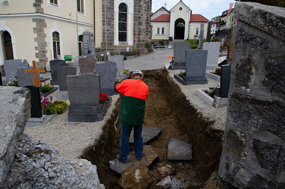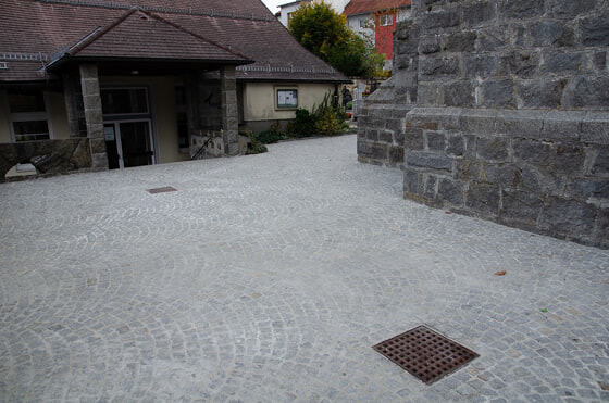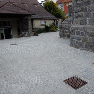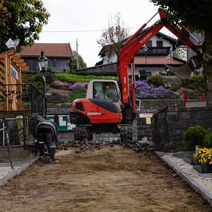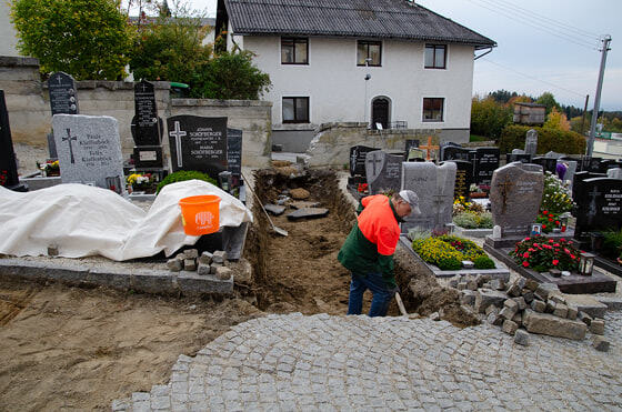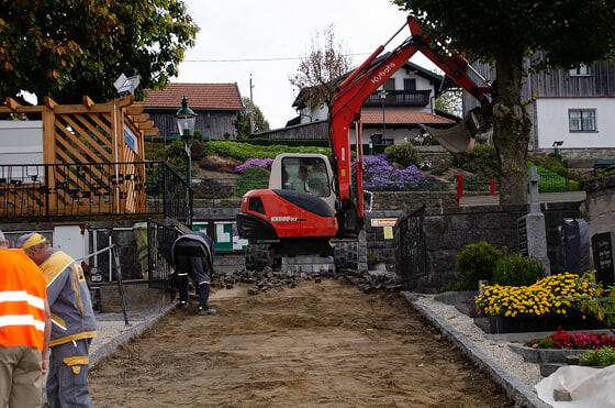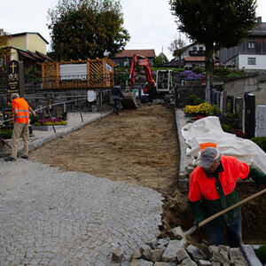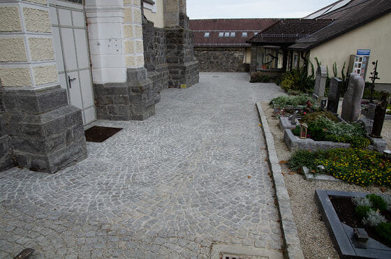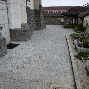 Kanal und Pflasterarbeiten im Friedhof der Pfarre Kopfing
