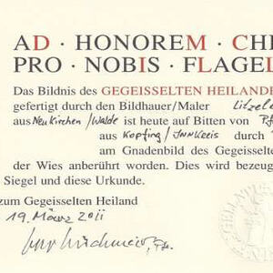 Durch Nachforschungen von Konsulent Johann Klaffenböck wurde diese Ge- schichte Kopfings und die Bedeutung des Gegeißelten Heilands (Wiesheilands) wieder ins Bewusstsein der Menschen zurück geführt.