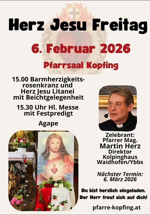 15.00 Uhr Barmherzigkeits-Rosenkranz und Herz-Jesu-Andacht und Beichtgelegenheit