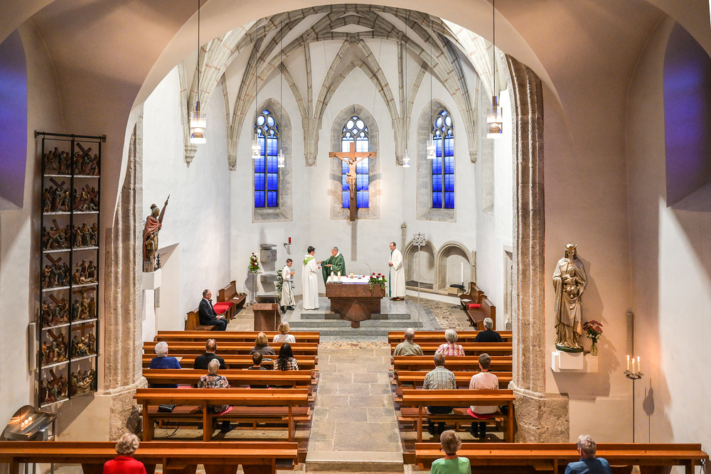Im Rahmes eines Festgottesdiestes mit anschließender Überraschungs-AGAPE vor der Kirche am 5. Sept. 2020 nimmt