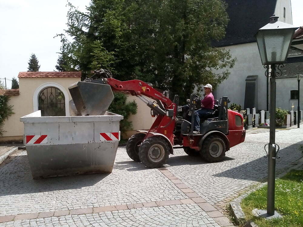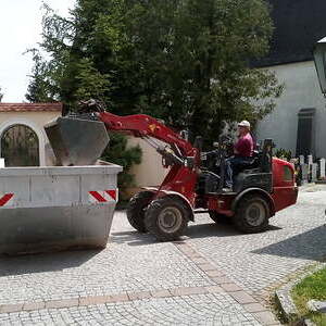 Der Betonbelag wurde mittels Minibagger aufgebrochen und mittels Hoflader in Container verführt unt entsorgt.