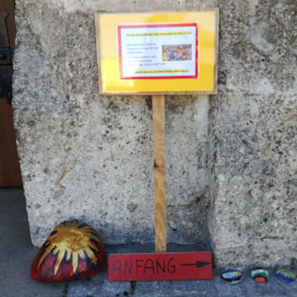 Alle (Volksschul-)Kinder sind eingeladen, Steine zu bemalen und damit einen bunten Steineweg um die Kirche zu gestalten. -