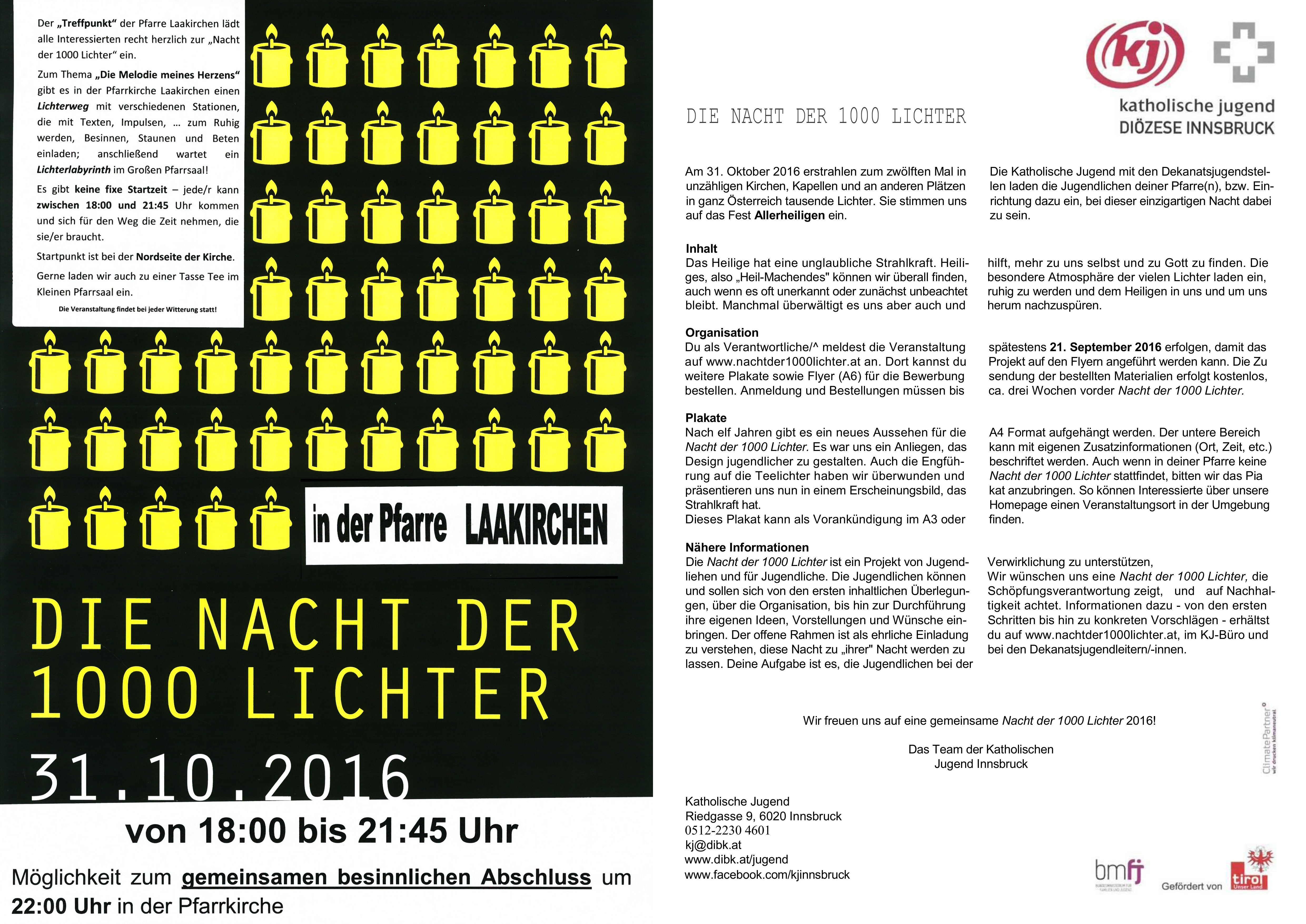 Am Abend des 31. Oktober erstrahlen in vielen Pfarren Österreichs tausende Lichter – sie wollen uns mit der "Nacht der 1000 Lichter" auf das Allerheiligenfest einstimmen, aber auch einfach zum Ruhig werden, Besinnen, Staunen und Beten einladen.
