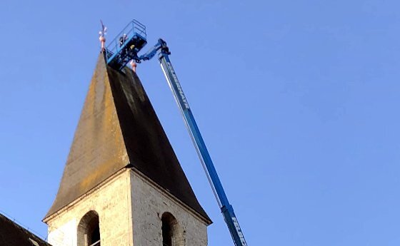 Erneuerung der Kirchturmkreuze, Entfernung des Efeus