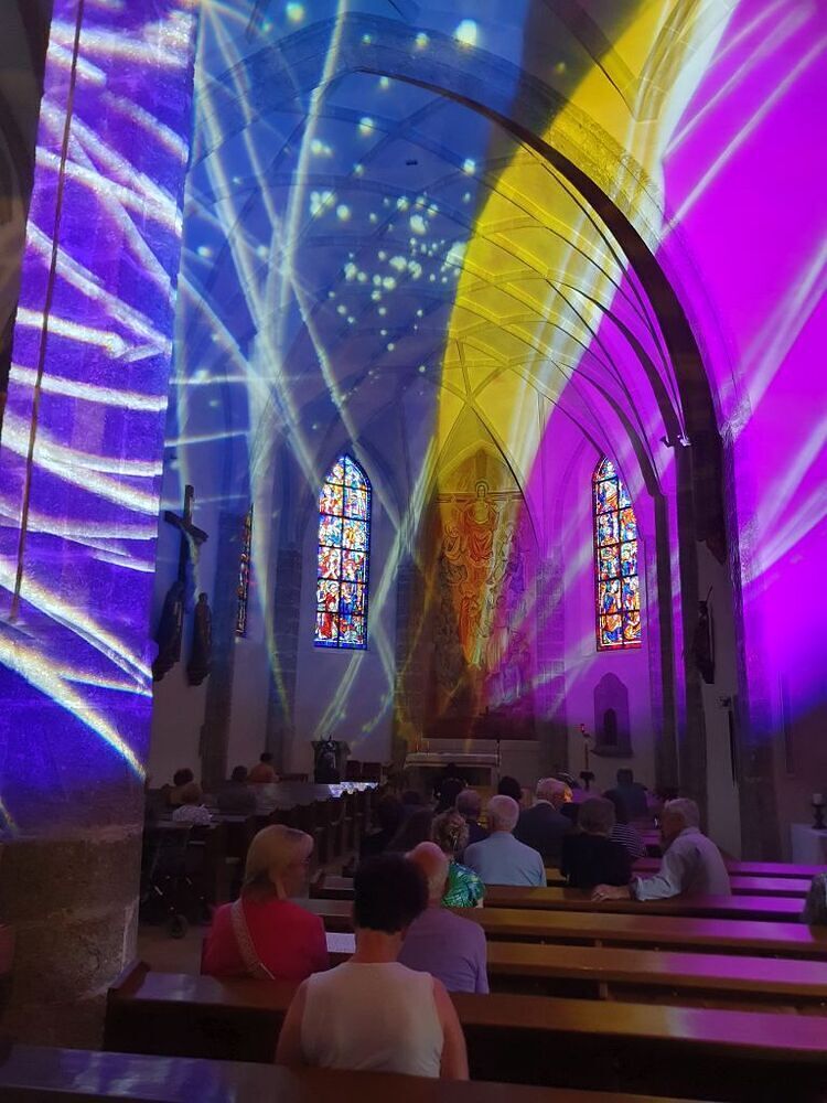 Im Rahmen der Kulturhauptstadt 2024 wurde die Pfarrkirche Laakirchen am Samstag 7. September 2024 ab 19.00 Uhr zum temporären Lichtkunstwerk - einem Chromotop, das mit der Musik der Orgel in Dialog trat.