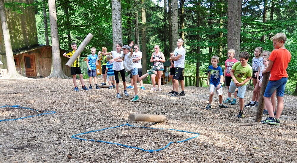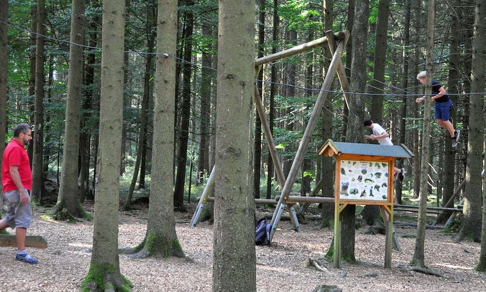 Schlögen (Führung durch einen römischen Soldaten in der Landesausstellung) und Kopfing (Baumkronenweg und Holzfällergaudi)