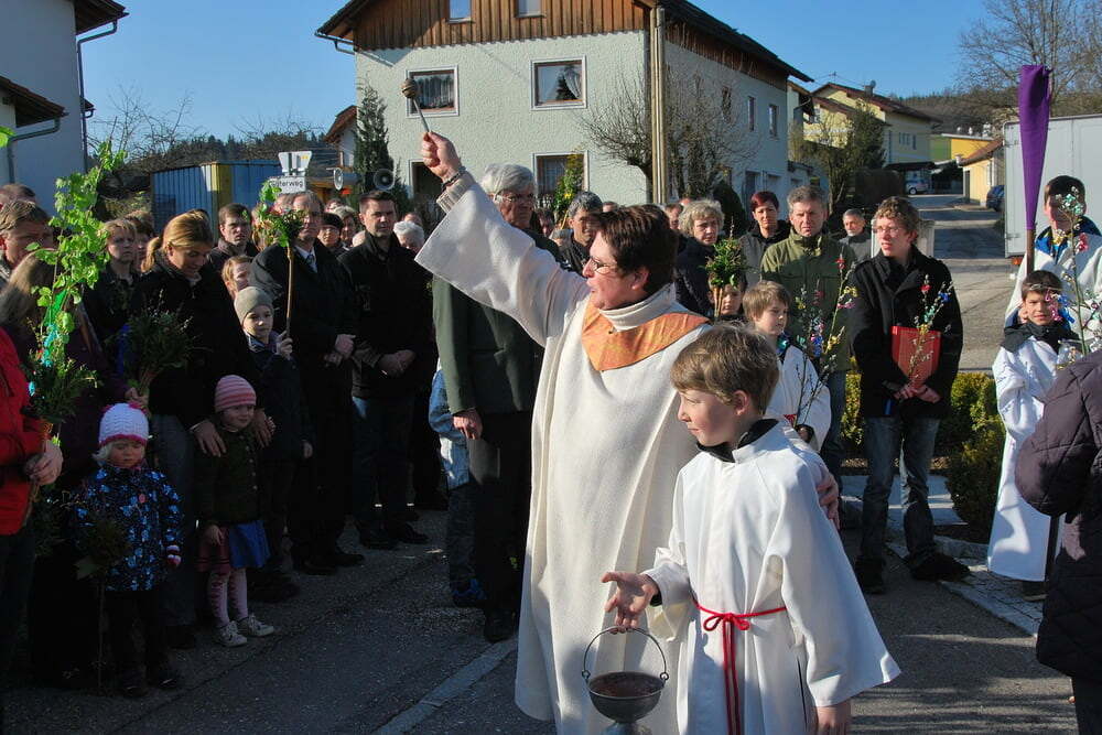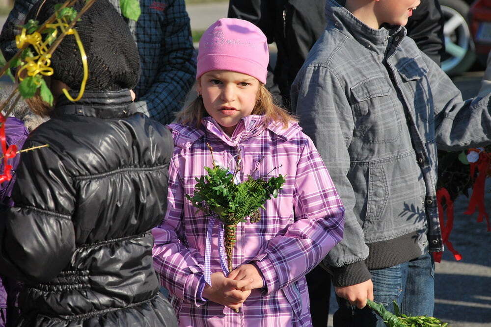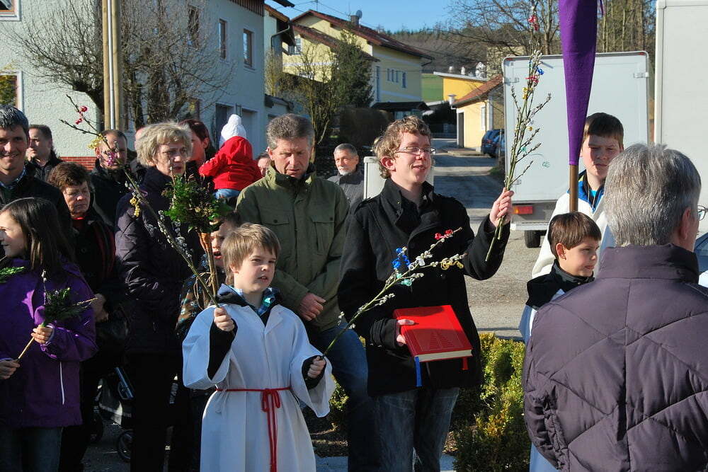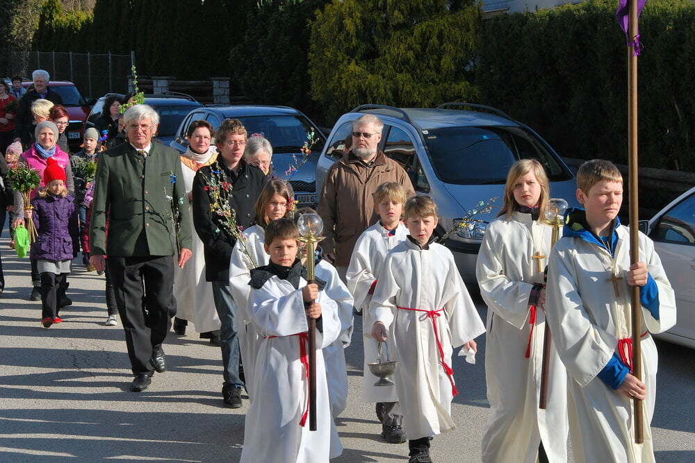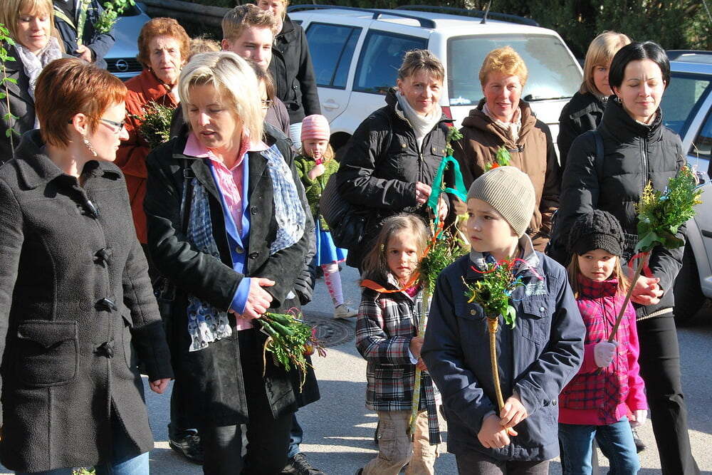 Die einen mit selbstgemachten Palmbuschen, die anderen mit jenen hübschen Palmbuschen, die von den Mitgliedern unserer Trachtengruppe angeboten wurden.