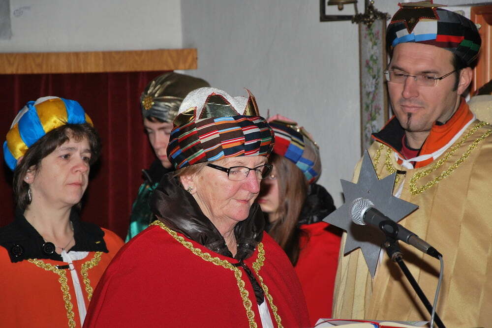 Bei der Wort-Gottes-Feier wurde auch jener Menschen auf den Philippinen gedacht, für die heuer besonders gesammelt wurde. Noch einmal erzählten der Sternträger und die Heiligen drei Könige ihre Geschichte, noch einmal zeigten sie den Stern, Krone, Schminke, Kreide, Geldkasse und Kerze als Symbole ihrer Reise. Der Jugendchor umrahmte schwungvoll und gekonnt die von Sissy Strigl gestaltete Wort-Gottes-Feier, in dem die Freude an der Gemeinschaft mit Gott und untereinander ganz besonders spürbar war.