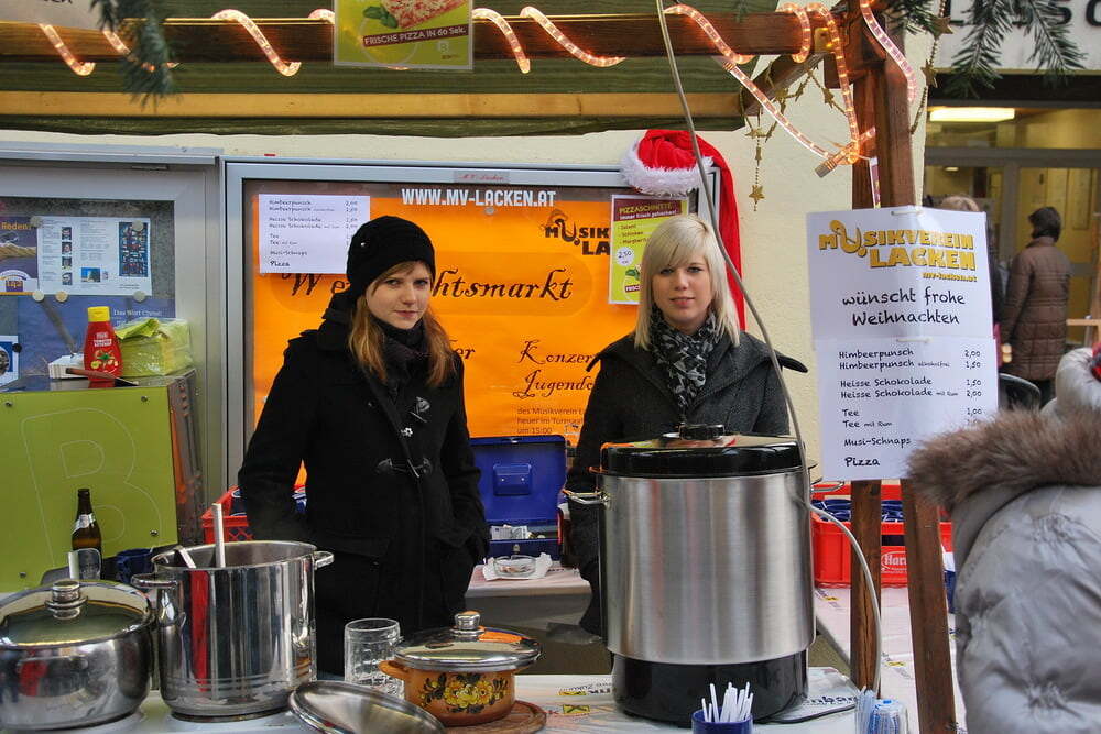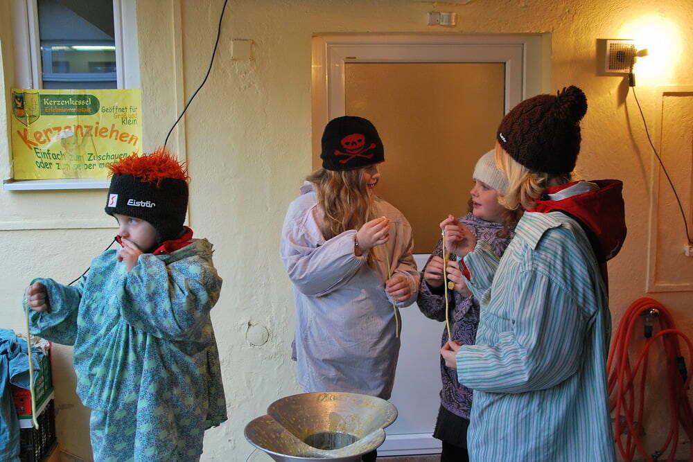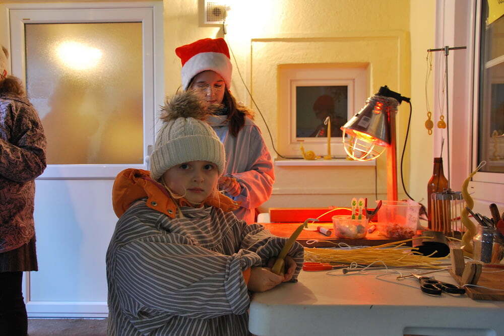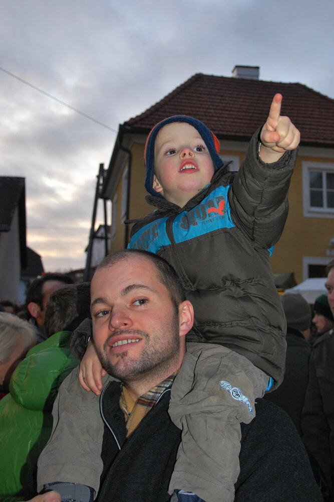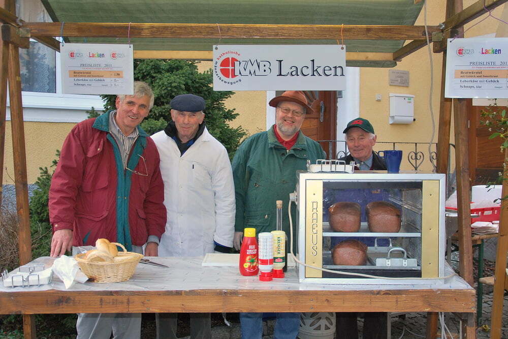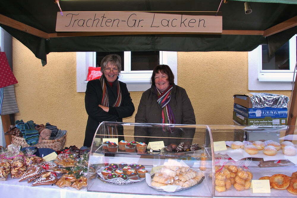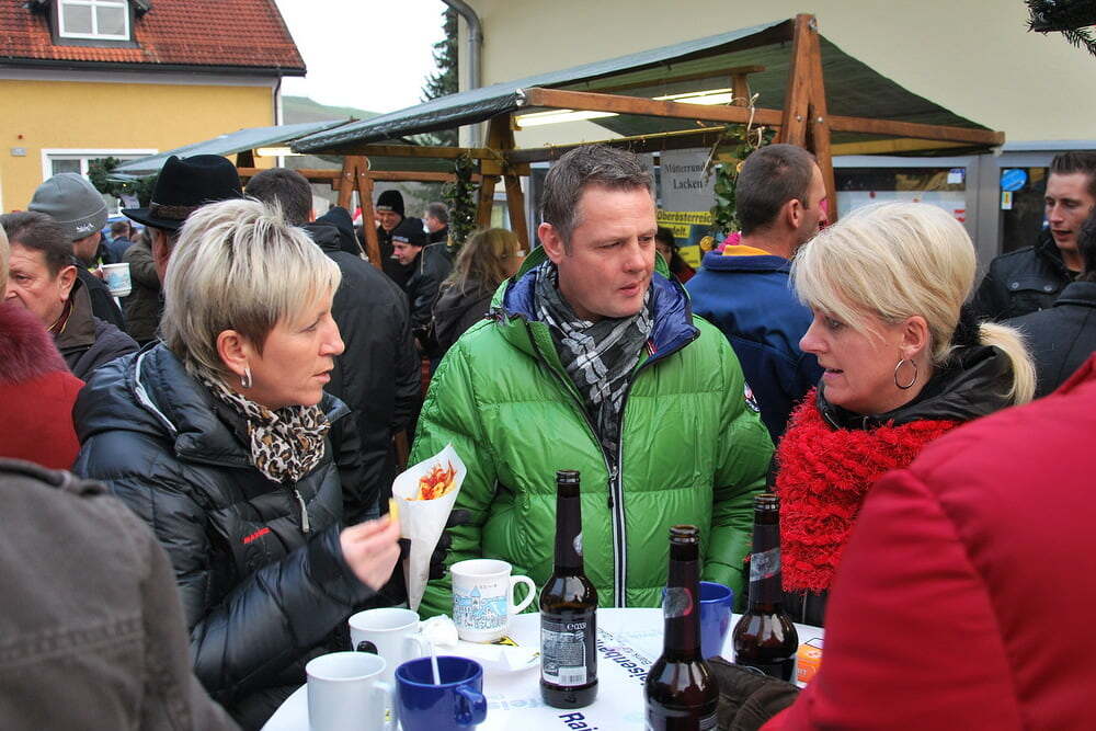 Dass der Adventmarkt in Lacken immer a „Gaude“ ist und nie zum Kaufmarkt wird, an dem es nur ums Konsumieren geht, dafür sorgen die vielen Jungen und Alten aus Nah und Fern, die hier Freunde und Bekannte treffen, auf ein Tratscherl zusammenstehen oder -sitzen und die Kinder, die dazwischen herumwurln und nur beim Kerzenziehen ein bissl langsamer werden müssen.