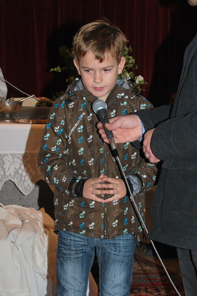 Für alle, die es nicht im Gottesdienst gehört haben: 8 neue Ministranten, das sind genau 50 Prozent aller Erstkommunionkinder des heurigen Jahres! Wie schön, dass die Liebe zu Jesus bei so vielen sich darin äußert, dass sie sich zu diesem Dienst bereit erklären. Aber natürlich zählt in Wirklichkeit nicht die Menge, sondern jeder einzelne. Und jede und jeder einzelne Ministrantin und Ministrant wurde nach der Festpredigt einzeln vor allen Anwesenden offiziell eingekleidet. Miteinander sprachen sie das Ministrantengebet.
