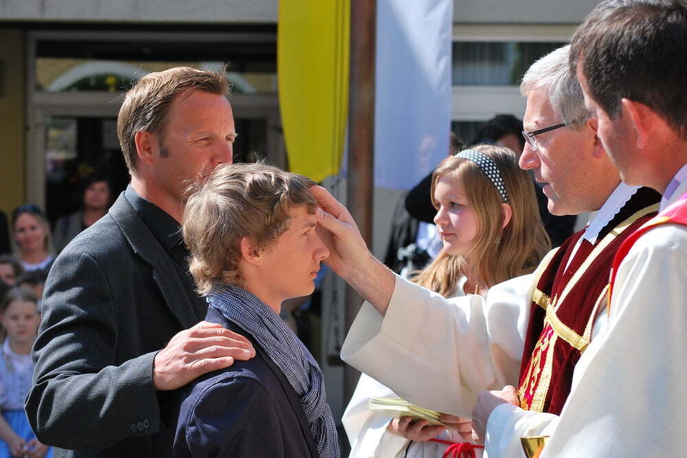Vor Beginn des Firmgottesdienstes begrüßte Pfarrer Bell den Firmspender, den Regens des Priesterseminars, Dr. Johann Hintermaier, der den Firmgottesdienst hielt. In seiner Ansprache knüpfte Johann Hintermaier an die Lesung an, in der berichtet wird, wie die Jünger dem auferstandenen Jesus (den sie aber zuerst nicht erkennen) ausführlich erzählen, was sie bedrückt: Dass ihre große Hoffnung, Jesus, gekreuzigt worden sei. Jesus hört ihnen zu, lässt sie ihren Kummer bei ihm abladen.