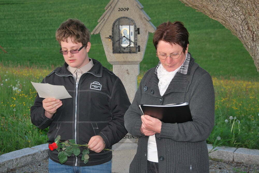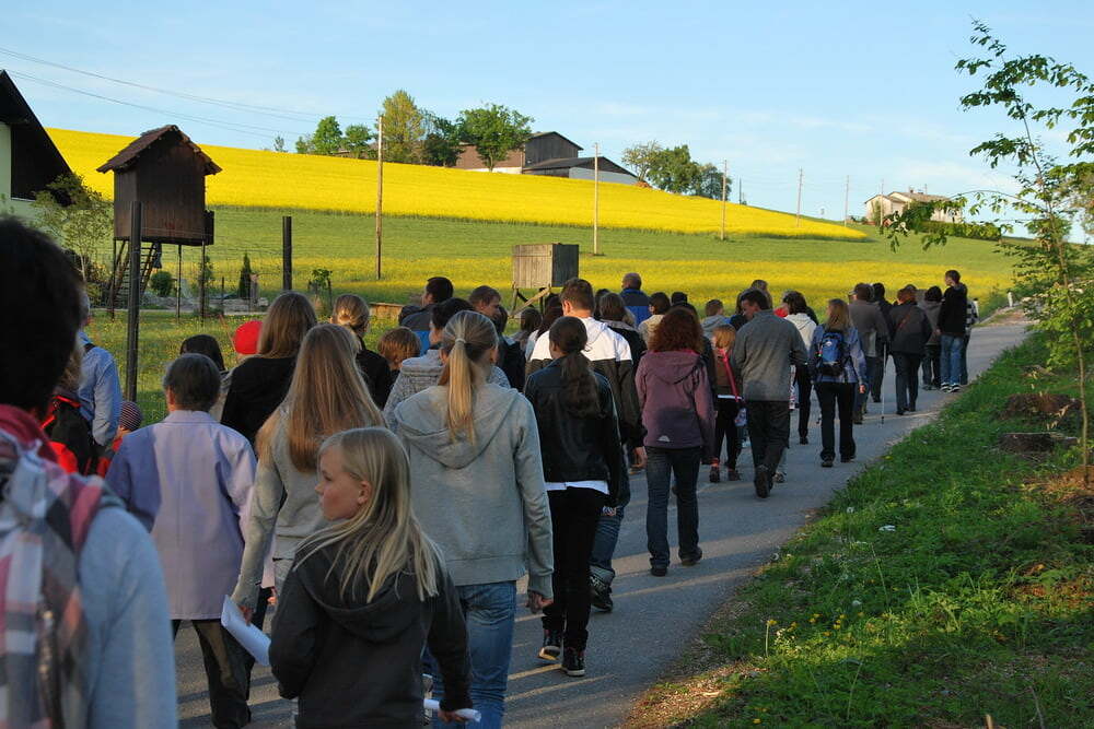 Bei idealem Wanderwetter führte der Weg von der Kirche zur Ortskapelle, weiter zur Vollkran-Kapelle, zum Pernsteiner-Marterl und abschließend zur Sireiter-Kapelle, bevor es wieder zurück zur Kirche ging. Bei den einzelnen Kapellen erfuhren die Firmlinge, wann und aus welchem Grund die Kapelle errichtet wurde und die kurzen Andachtstexte, die die Firmlinge vortrugen, gaben kleine Impulse für das Leben der Firmlinge. Zum Abschluss gab es am Kirchenplatz noch ein lautstarkes „Happy Birthday“ für Tobias und Johannes. Auch an dieser Stelle noch alles Gute zum Geburtstag!