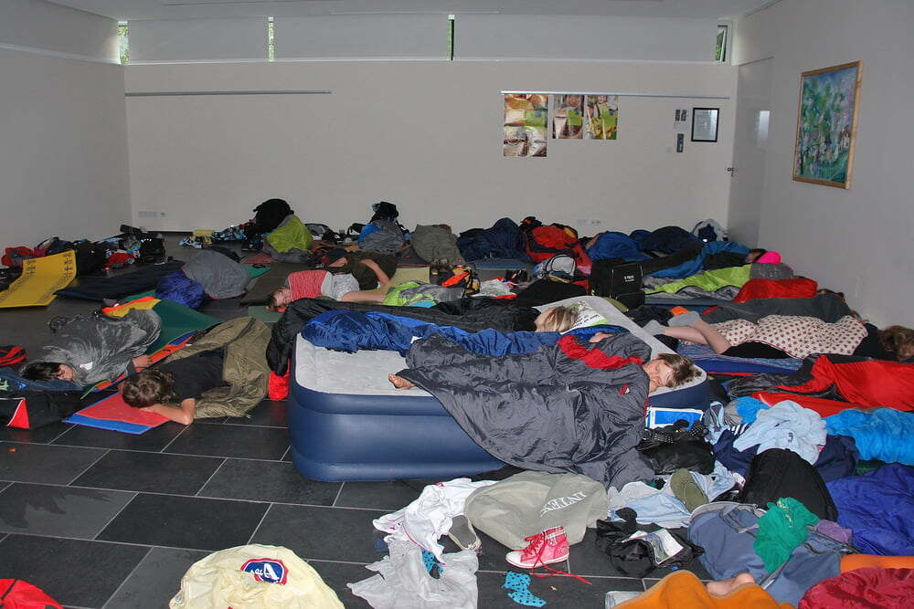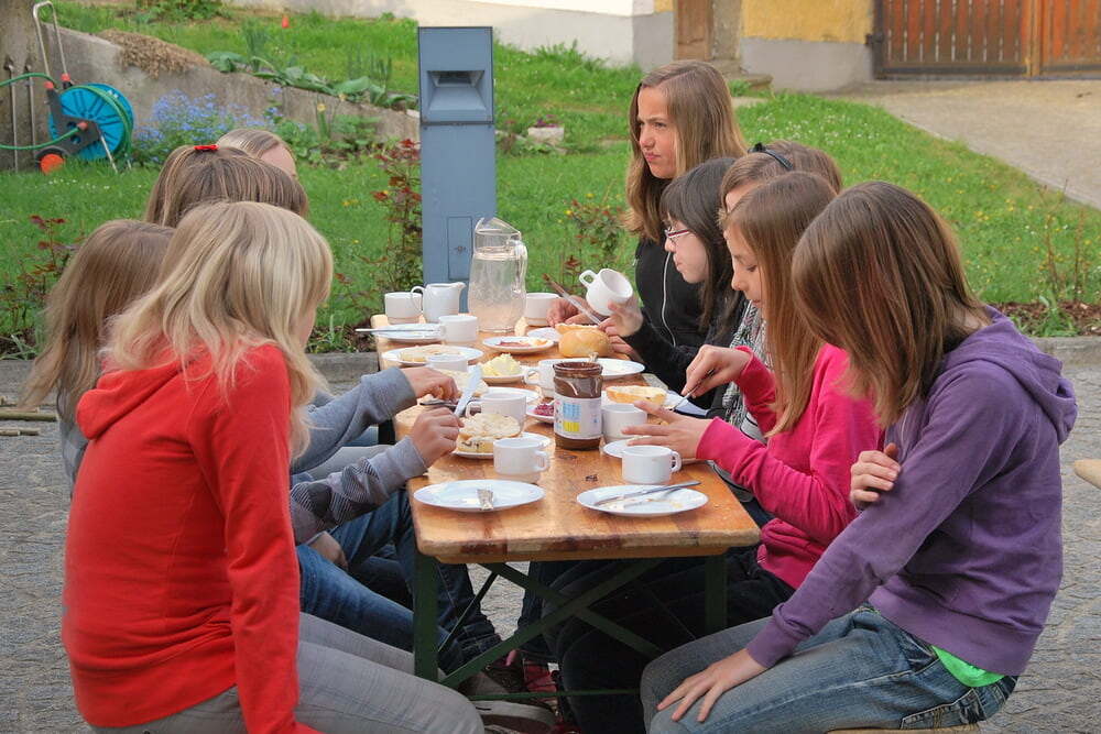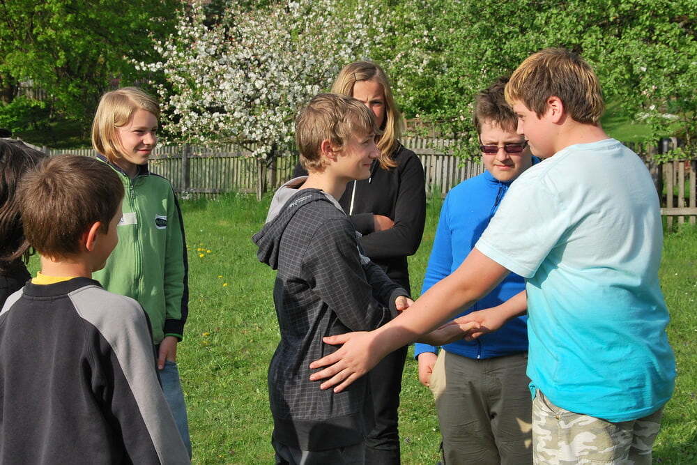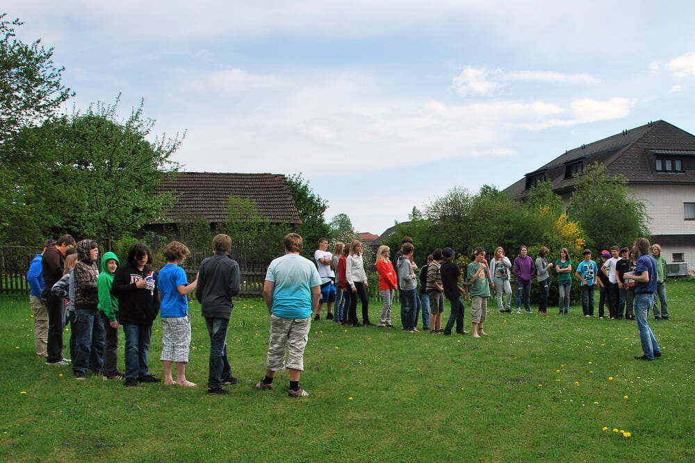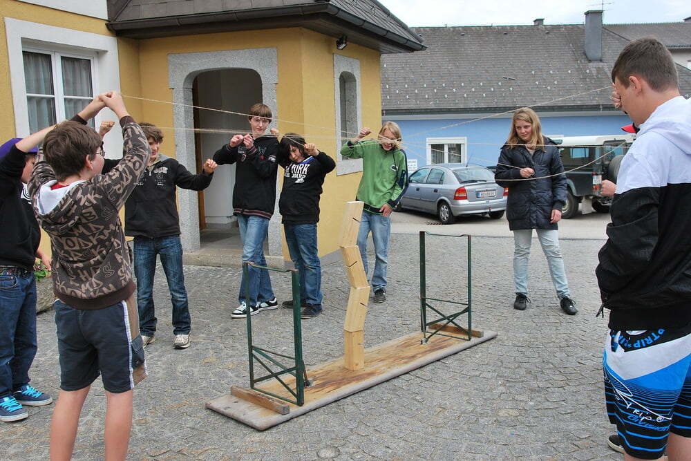 Nach einer kurzen Stärkung und der Erklärung des weiteren Ablaufs lernten die Firmlinge, wie man sich bei einer Bushaltestelle auch ohne Bank niedersetzen kann. Anschließend wurde St. Johann durch markerschütternde Schreie aus der nachmittäglichen Ruhe gerissen. Die mittlere von drei Gruppen musste versuchen, so laut zu schreien, dass die linke Gruppe nicht verstehen konnte, welchen Begriff ihr die rechte Gruppe zurufen wollte. Und zur Auflockerung gab es noch ein Jump-and-run-Spiel, diesmal aber nicht auf dem Computer. Zur Vorbereitung des Abendlobs teilten sich die Firmlinge in drei Gruppen: Gruppe 1 erarbeitete mit Sissy Striegl und Anni Bumberger ein Bibliorama mit der pantomimischen Darstellung des Sonntagsevangeliums vom ungläubigen Thomas. Gruppe 2 überlegte sich gemeinsam mit Michael Radinger einige Fürbitten und Gruppe 3 probte mit dem Jugendleiter des Dekanats St. Johann, Reini Fischer, und Sandra Bruckner die Lieder - loud is beautiful. Alfred Alberer hatte sich inzwischen ums Lagerfeuer gekümmert, sodass nach den Vorbereitungen unverzüglich zum abendlichen Grillen übergegangen werden konnte. Witterungsbedingt musste die geplante Wanderung auf den Hansberg stark gekürzt werden, wodurch zum Leidwesen aller auch der Fackelzug entfiel. Bei einer Kapelle wurde das Abendlob gefeiert, wo auch die vorbereiteten Lieder gesungen wurden, das Bibliorama aufgeführt wurde und die Fürbitten vorgetragen wurden. Nach der Rückkehr ins Quartier beschäftigten sich einige Firmlinge still (was man bei Firmlingen halt so unter still versteht) und einige sangen noch gemeinsam mit Reini und Sandra aktuelle Lieder, aber auch alte ‚Hadern’ (‚Country roads, take me home’, ‚Meine Oma fährt im Hühnerstall Motorrad’, ...). Die geplante Nachtruhe um 23 Uhr 30 war mehr ein frommer Wunsch als Realität. Gegen halb fünf Uhr morgens war es dann endlich ruhig und so kamen auch die Mitglieder des Firmteams noch zu eineinhalb Stunden Schlaf.