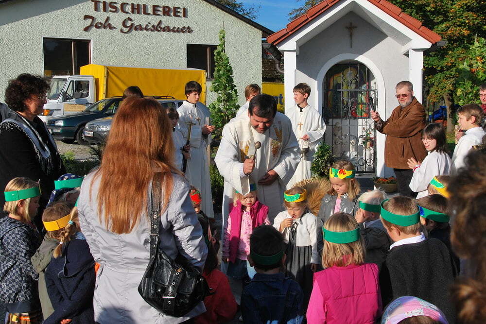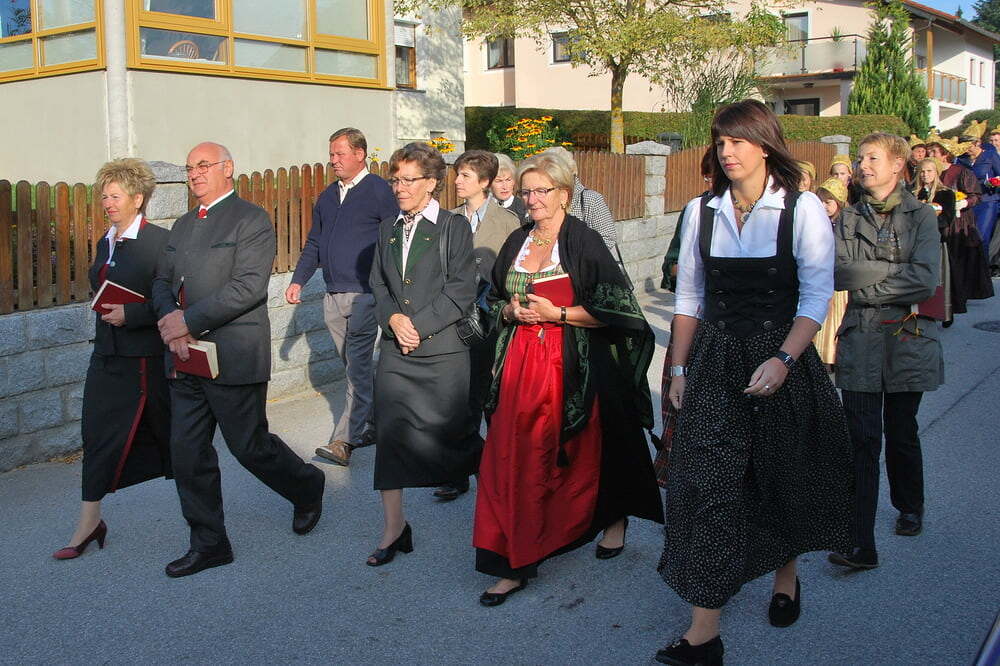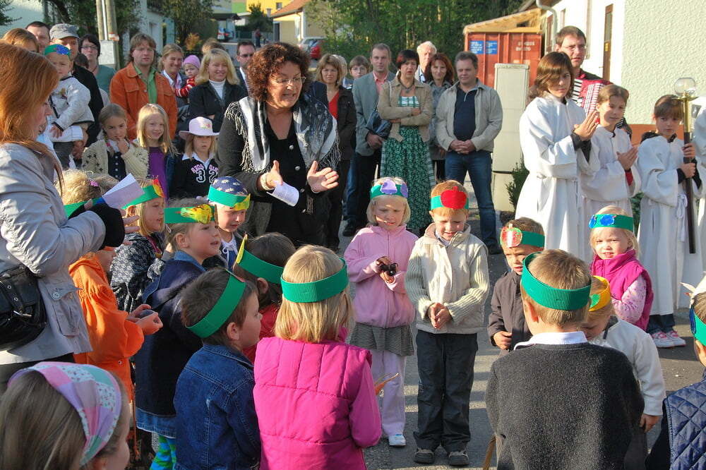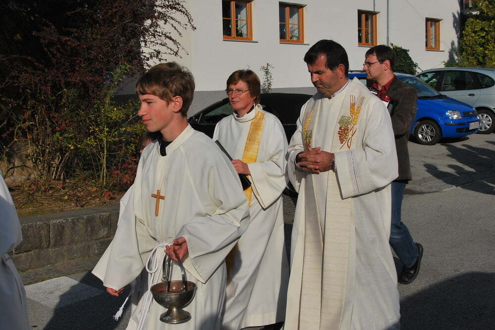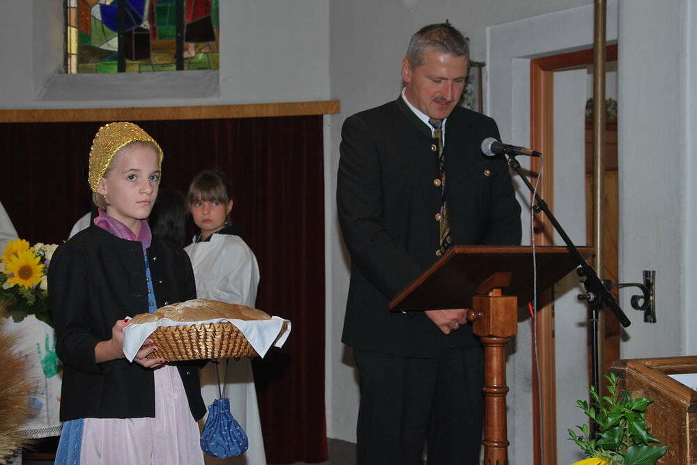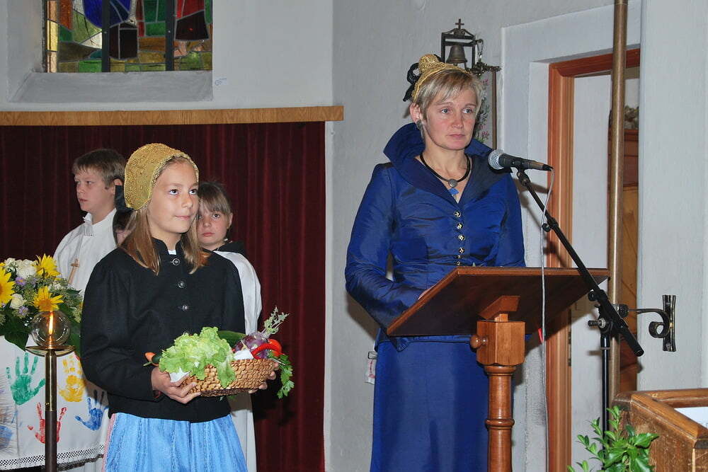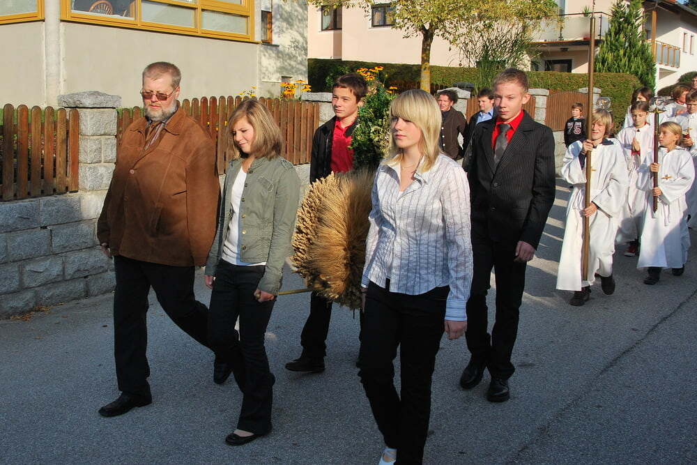 Unsere Dankbarkeit brauchen wir nicht allein zu formulieren, die vielen wunderschönen Elemente des Erntedanks wie Erntekrone, Musik, gemeinsamer Einzug von der Ortskapelle zur Kirche, der feierliche Gottesdienst in der Kirche und auch das lustige Zusammensein danach im schön geschmückten Veranstaltungsraum der FF Lacken - und auch die Möglichkeit, ein „Stück Erntedank“ als Türkranz oder sonstigen Schmuck zur Erinnerung an all das mit nach Hause zu nehmen, - all dies sind Ausdrucksformen der Dankbarkeit, die wir nicht jedes Jahr neu erfinden müssen. Darum ist die Beteiligung aller so bedeutsam: Dass die Kindergartenkinder von den Früchten singen, dass der Kirchenchor die vertrauten Melodien zum Erntedank vorträgt, dass die Musikkapelle spielt - all dies ist unverzichtbar als Teil des gemeinsamen Feierns - durch das gemeinsame Danken werden wir alle ein Stückchen reicher.