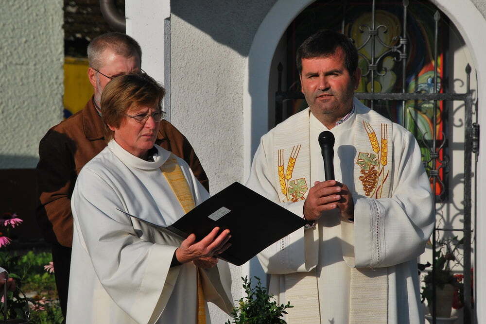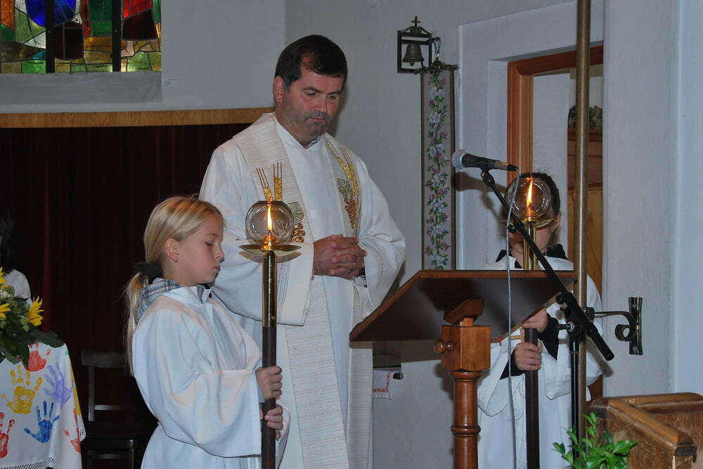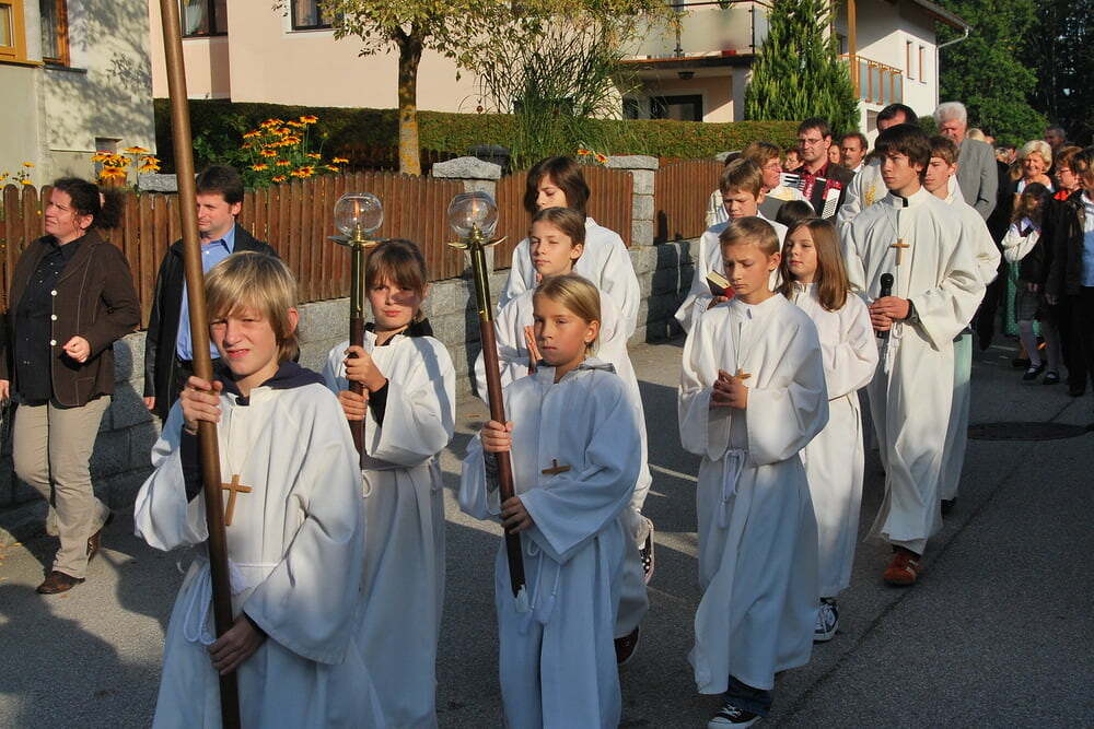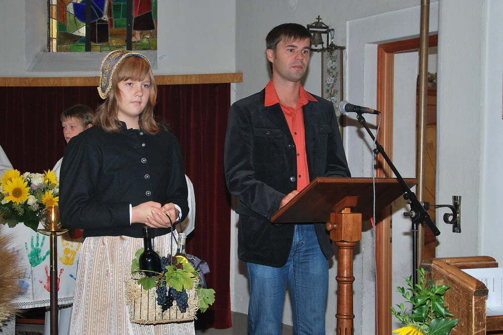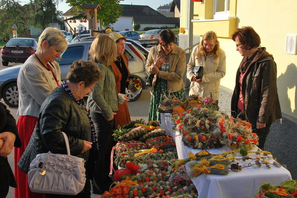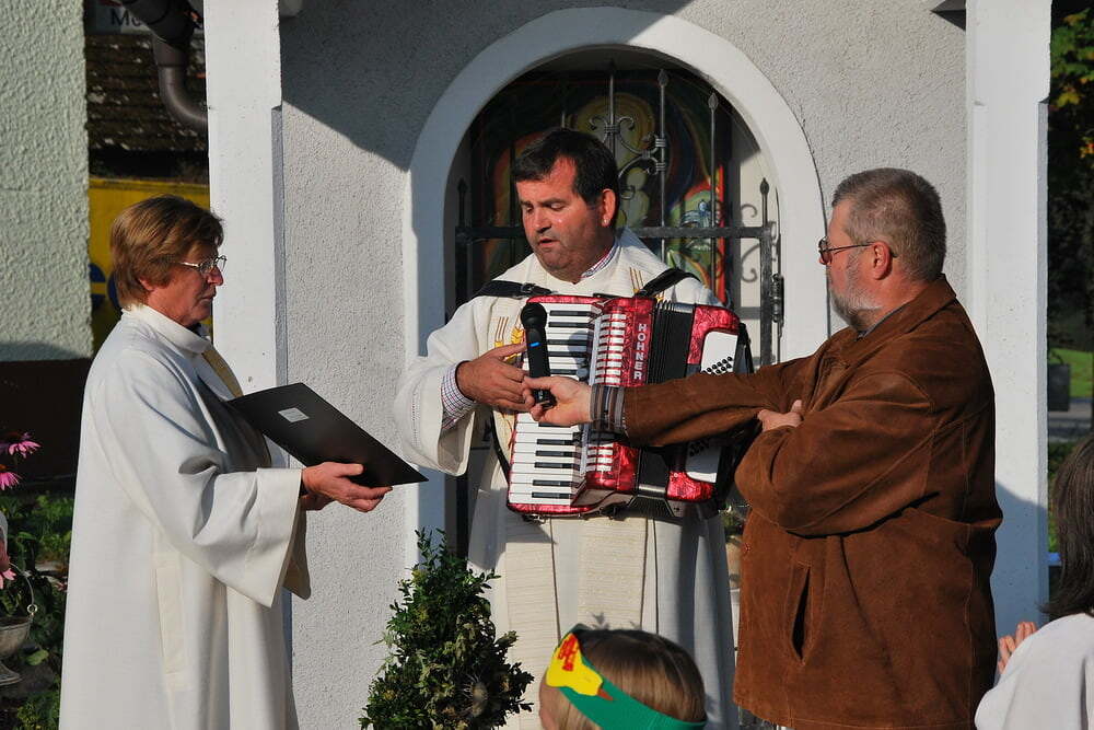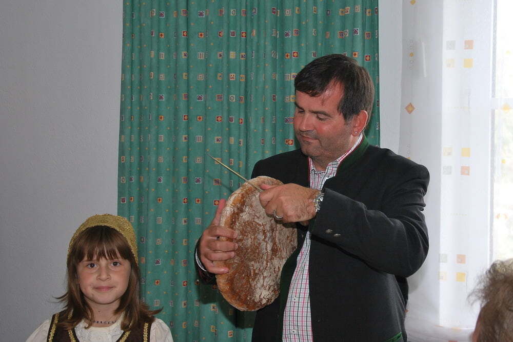 Unsere Dankbarkeit brauchen wir nicht allein zu formulieren, die vielen wunderschönen Elemente des Erntedanks wie Erntekrone, Musik, gemeinsamer Einzug von der Ortskapelle zur Kirche, der feierliche Gottesdienst in der Kirche und auch das lustige Zusammensein danach im schön geschmückten Veranstaltungsraum der FF Lacken - und auch die Möglichkeit, ein „Stück Erntedank“ als Türkranz oder sonstigen Schmuck zur Erinnerung an all das mit nach Hause zu nehmen, - all dies sind Ausdrucksformen der Dankbarkeit, die wir nicht jedes Jahr neu erfinden müssen. Darum ist die Beteiligung aller so bedeutsam: Dass die Kindergartenkinder von den Früchten singen, dass der Kirchenchor die vertrauten Melodien zum Erntedank vorträgt, dass die Musikkapelle spielt - all dies ist unverzichtbar als Teil des gemeinsamen Feierns - durch das gemeinsame Danken werden wir alle ein Stückchen reicher.