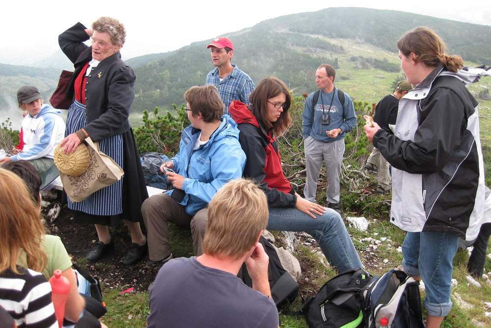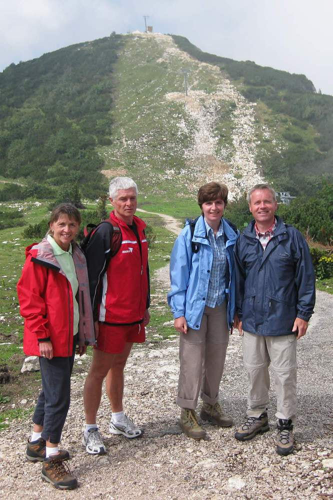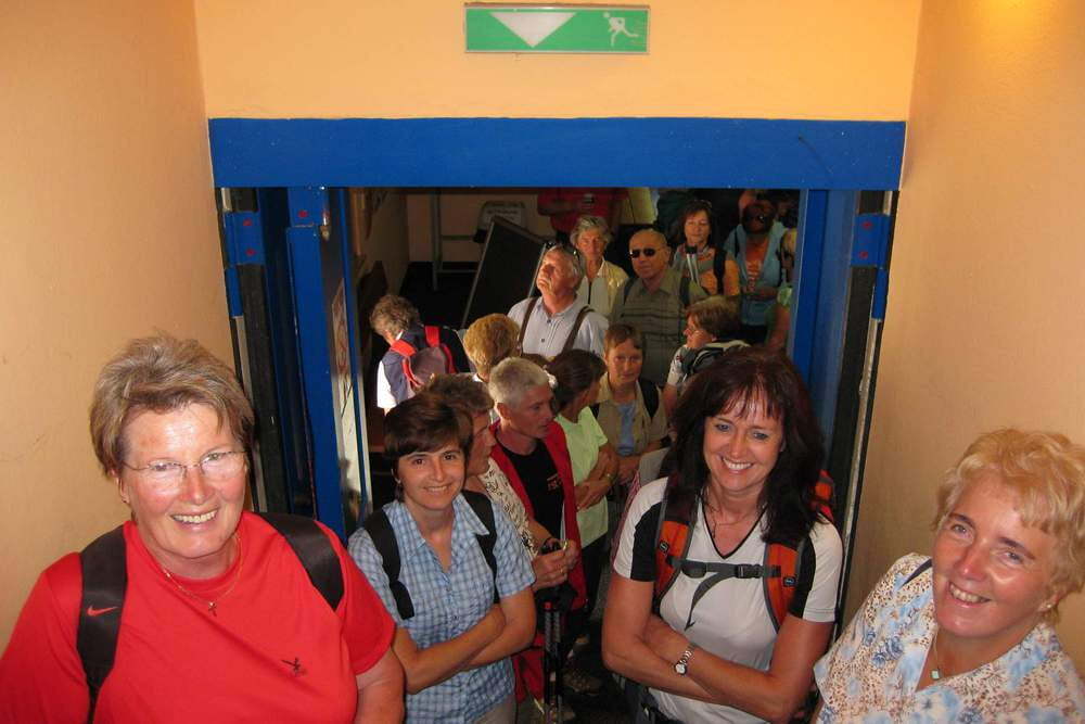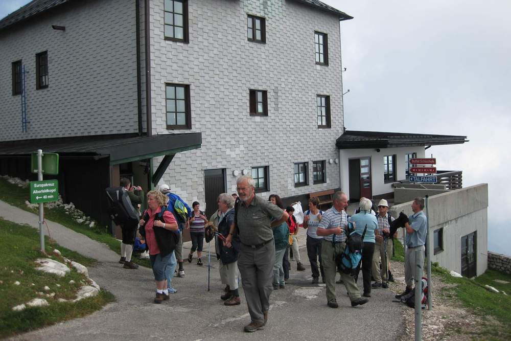 Gemeinsam erwanderten sich alle nach der Auffahrt in den Gondeln zum Feuerkogel den Alberfeldkogel. Wie im kirchlichen Leben sonst auch manchmal, wechselten beim Aufstieg sonnige Momente mit guter Fernsicht und schönem Ausblick mit dichten Nebelschwaden, die die Sicht verdunkelten, aber der guten Laune nichts anhaben konnten.