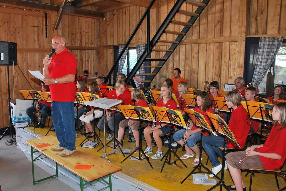 Die zweite Prozession des Tages führte anschließend zu ausgiebigerem Beisammensein beim Frühschoppen des Musikvereins. Unter der Leitung von Josef Mörzinger zeigten die Jungmusiker was sie schon alles draufhaben und wurden mit viel Applaus bedacht. Nachdem die ganz Jungen zum wohlverdienten Schmausen Platz genommen hatten, sorgten die (auch noch teilweise jungen) Lacki`s Drinka unter der Leitung von Gerald Mörzinger durch "echte böhmische Blasmusik" mit coolen Soloeinlagen dafür, dass der Hüttenfrühschoppen richtig aufgemischt wurde.